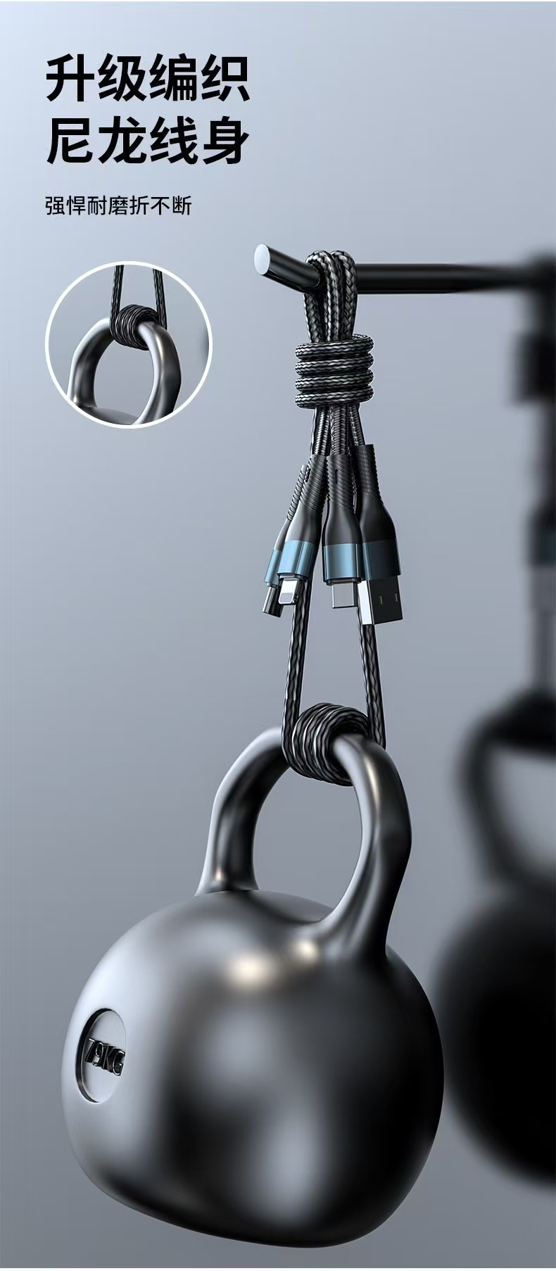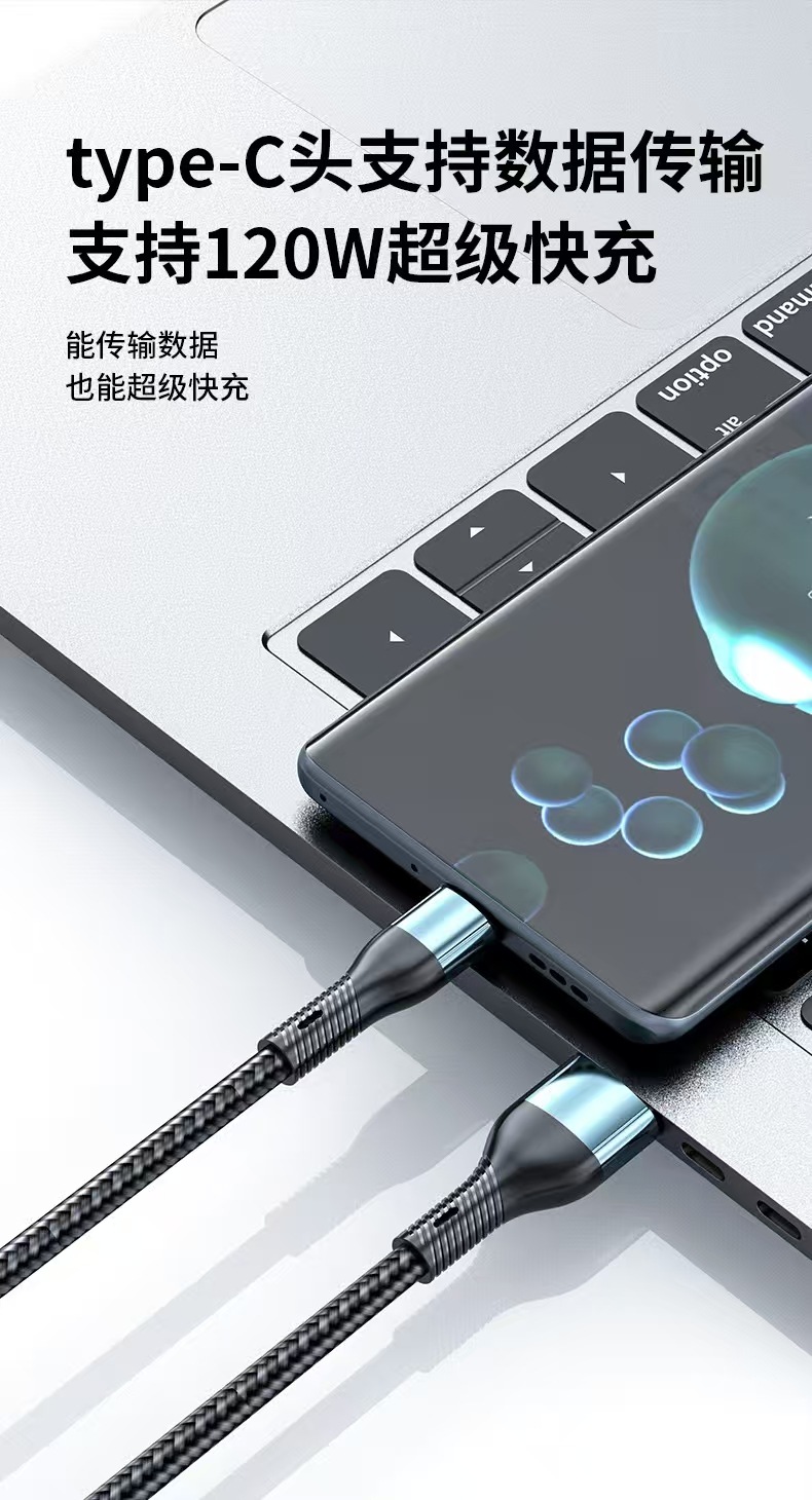 120W 꼰 1 대 3 휴대 전화 데이터 케이블 3 대 1 충전 라인 tpyec 초고속 충전 라인스토어 가기