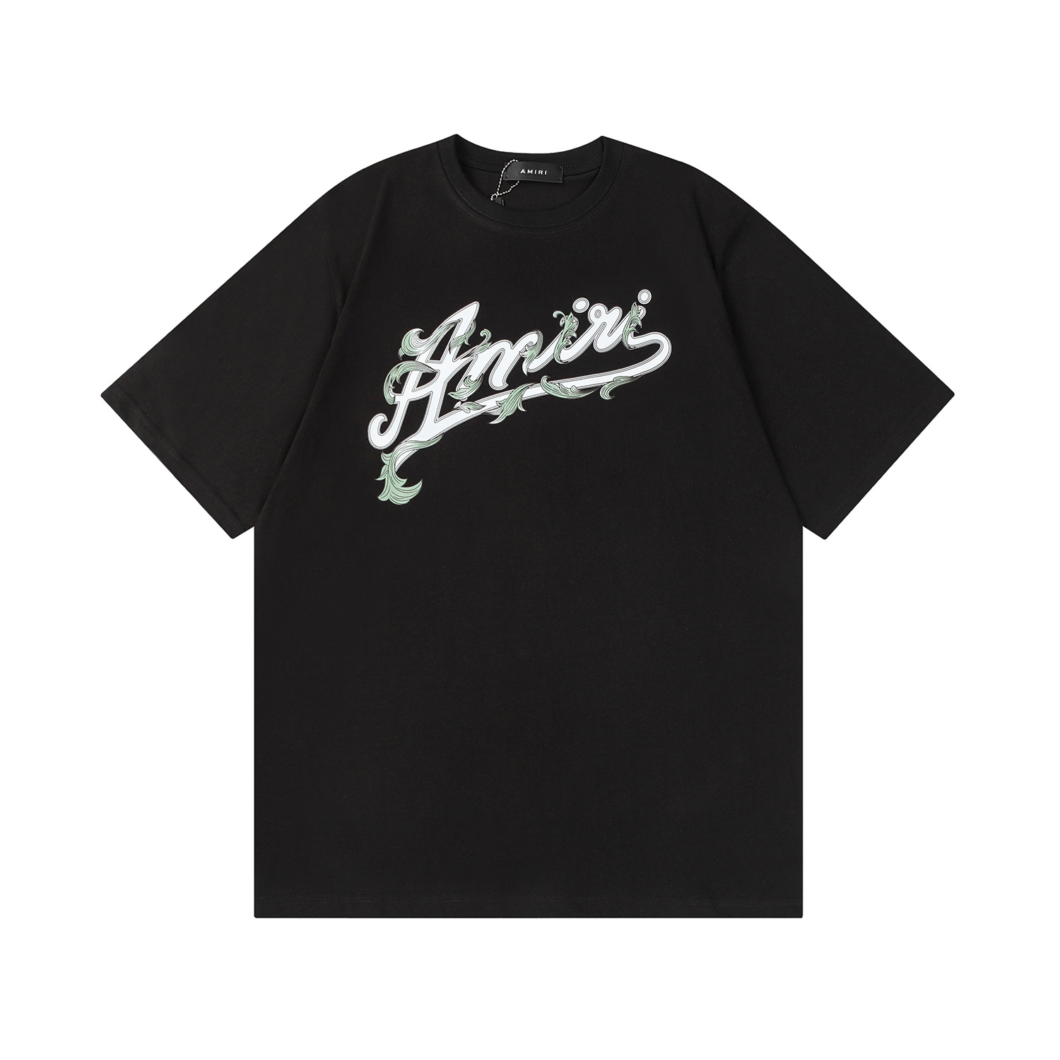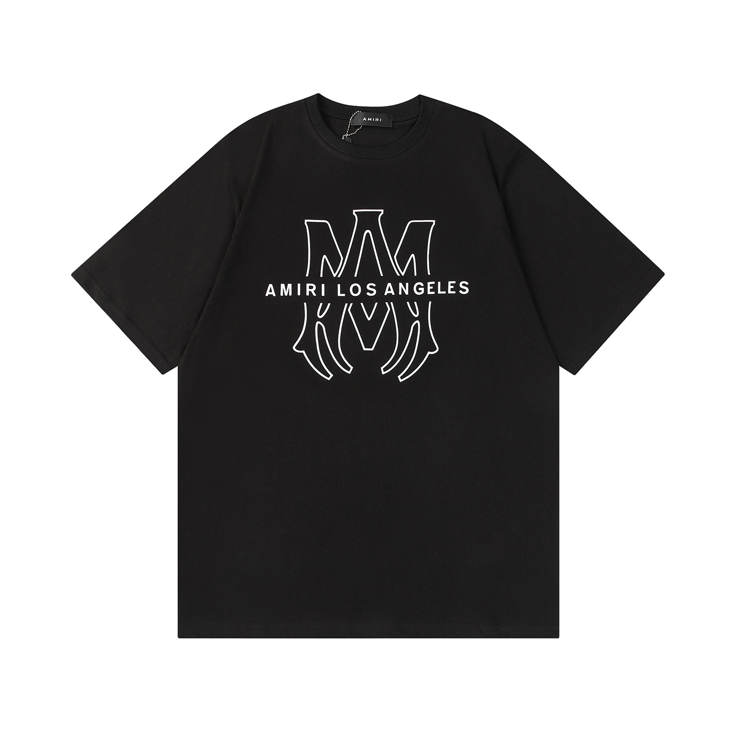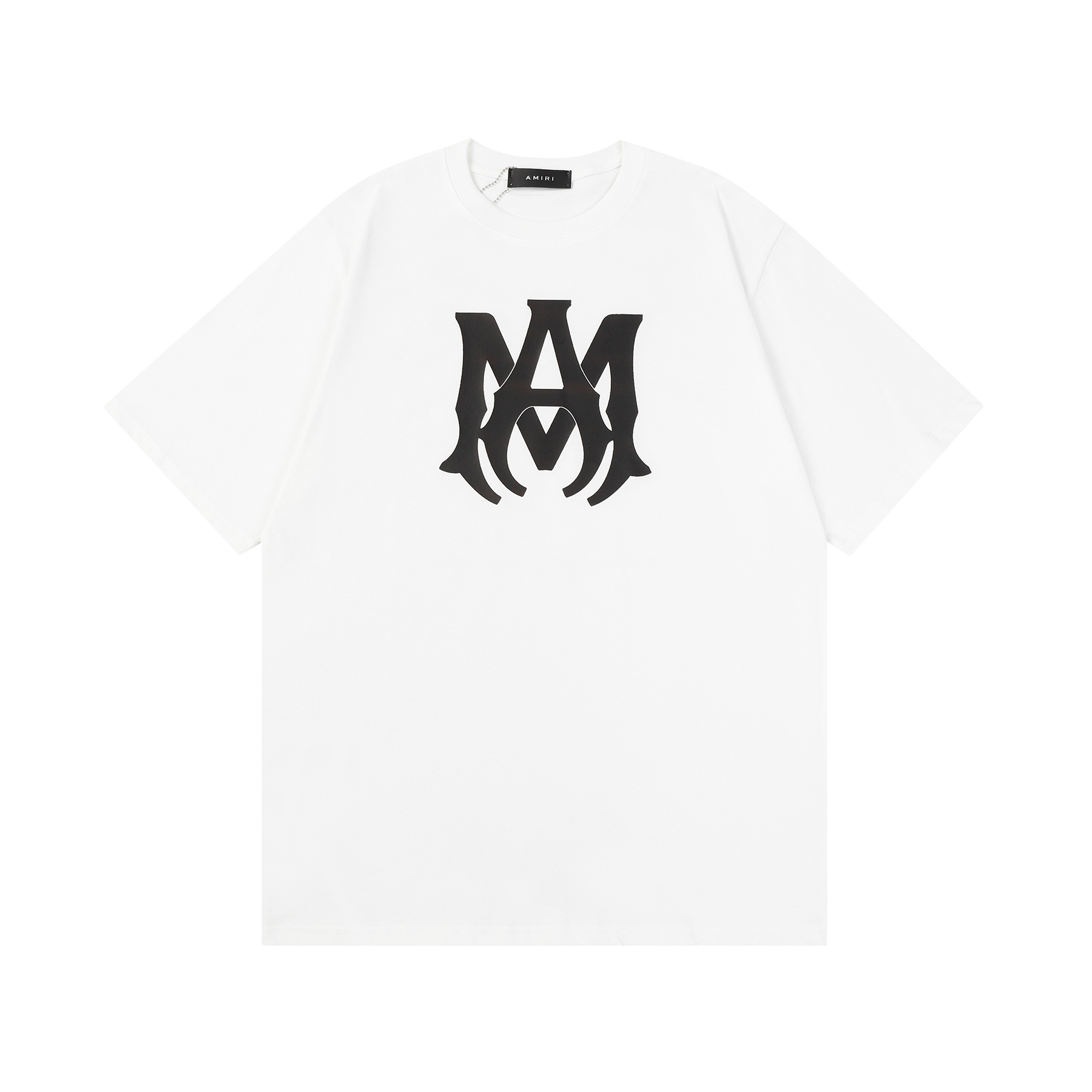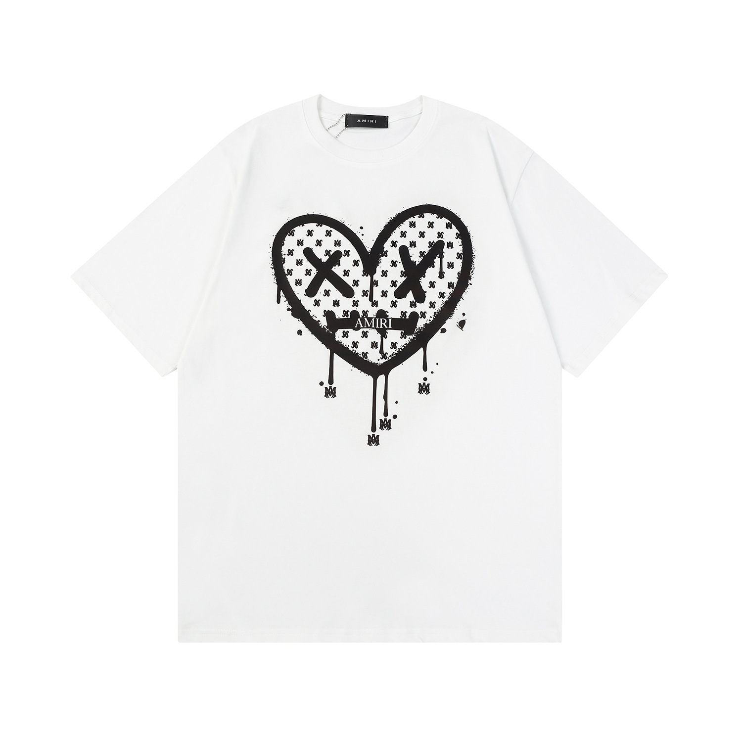 여름 새로운 국경 트렌디 브랜드 AMI 크루 넥 퓨어 코튼 남성과 여성의 인쇄 느슨한 캐주얼 반팔 티셔츠 재고 도매