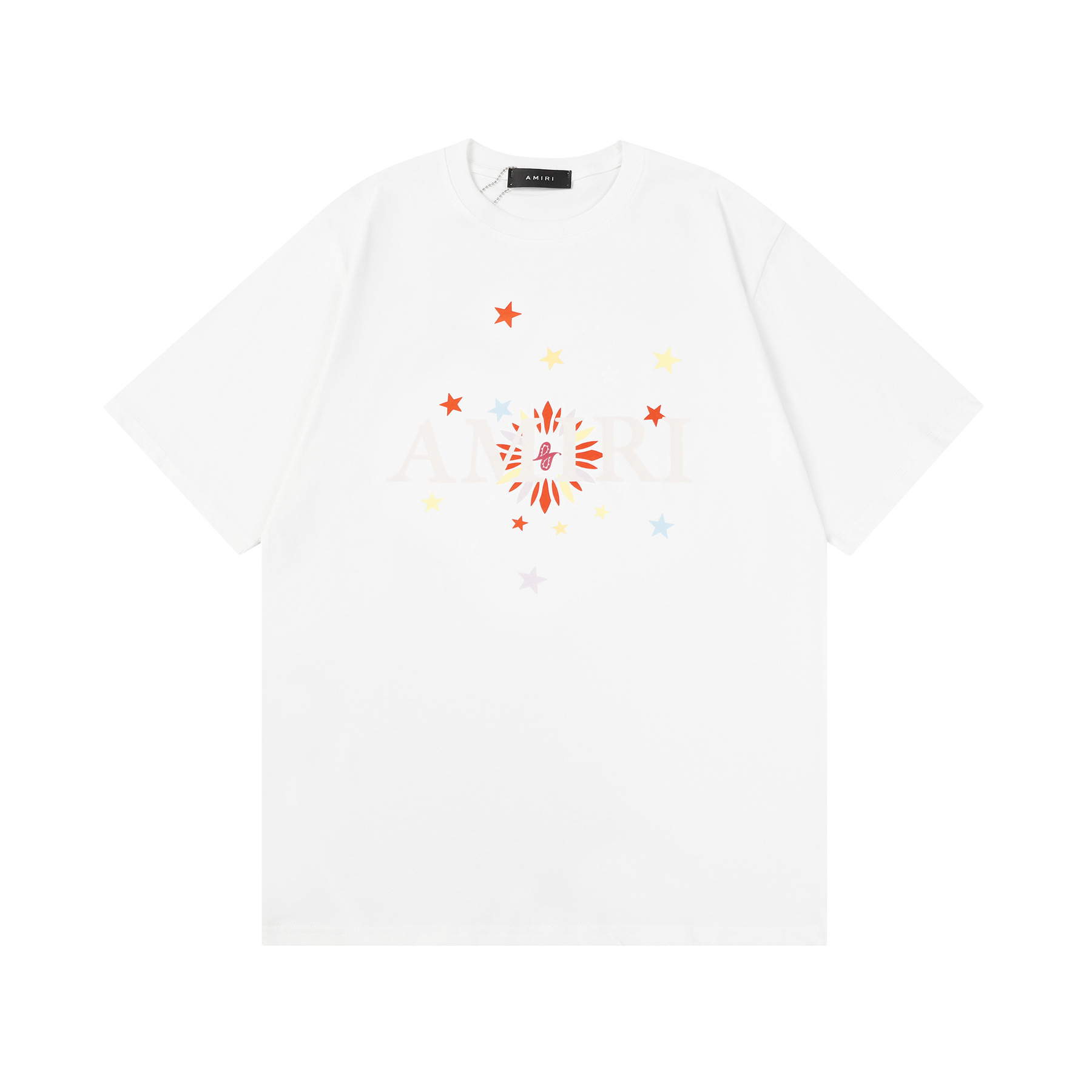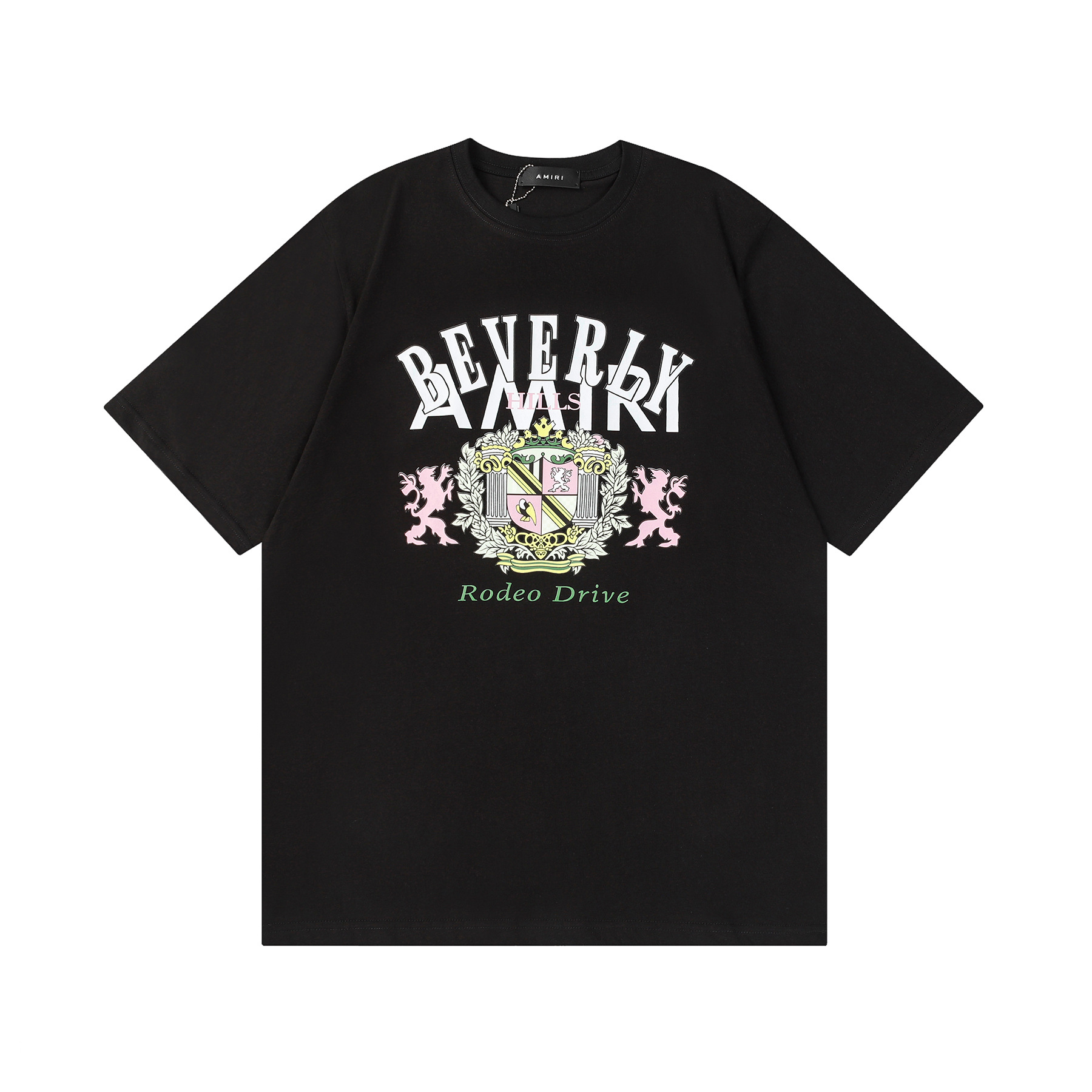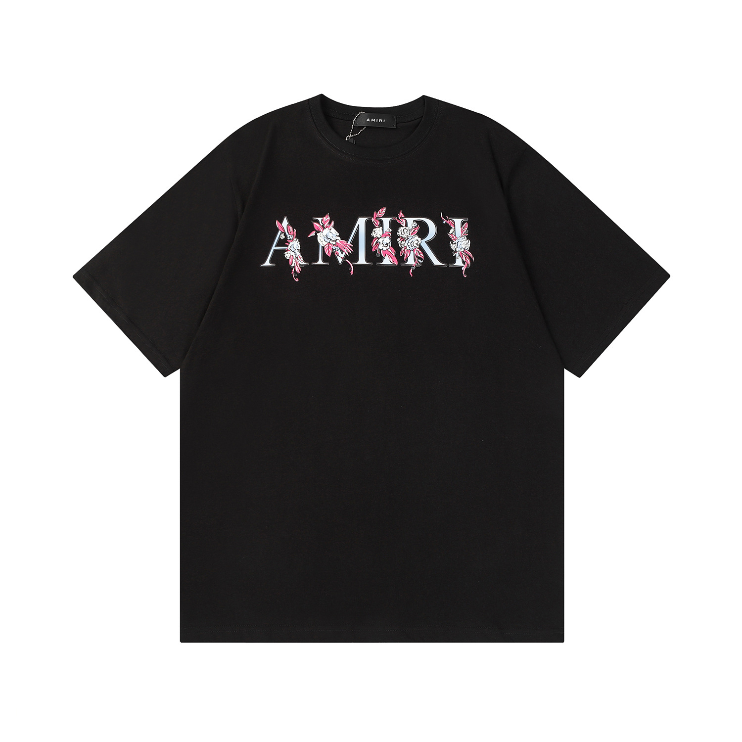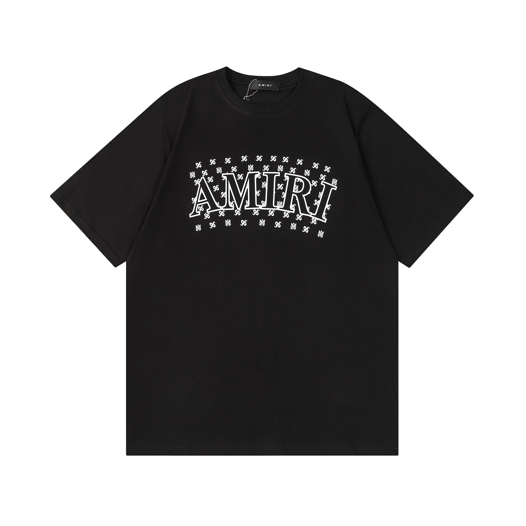 여름 새로운 국경 트렌디 브랜드 AMI 크루 넥 퓨어 코튼 남성과 여성의 인쇄 느슨한 캐주얼 반팔 티셔츠 재고 도매