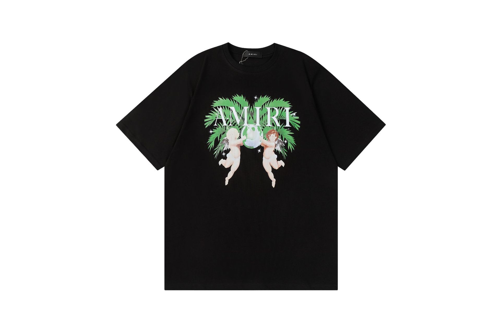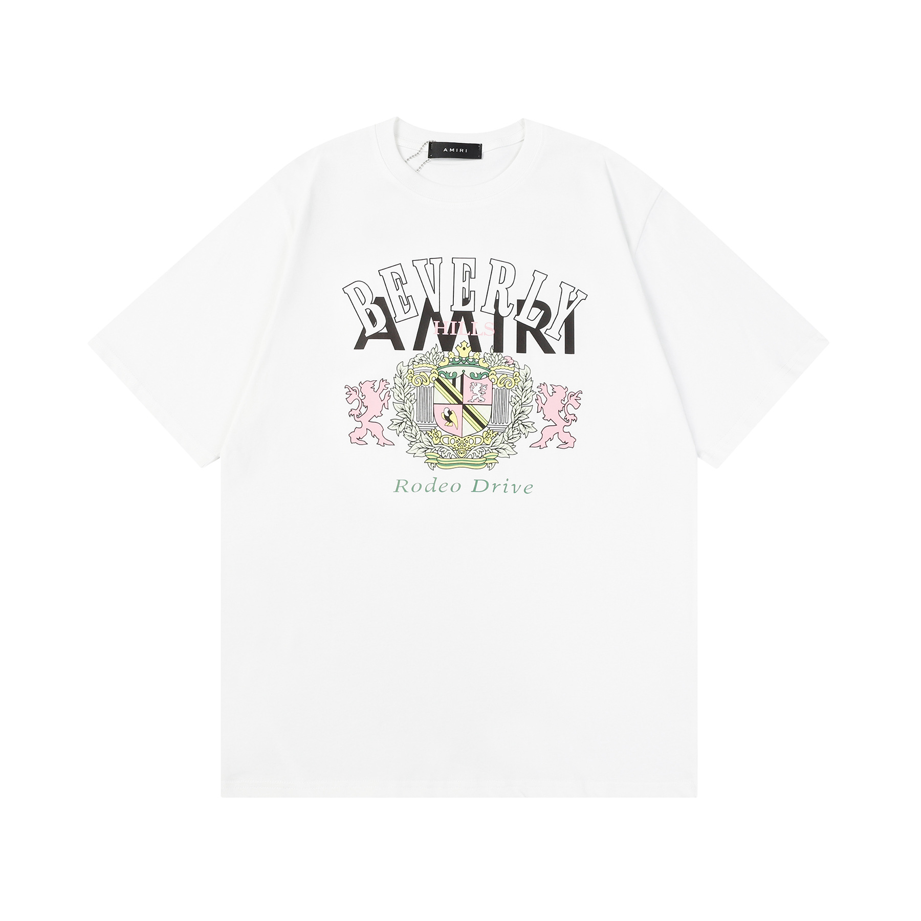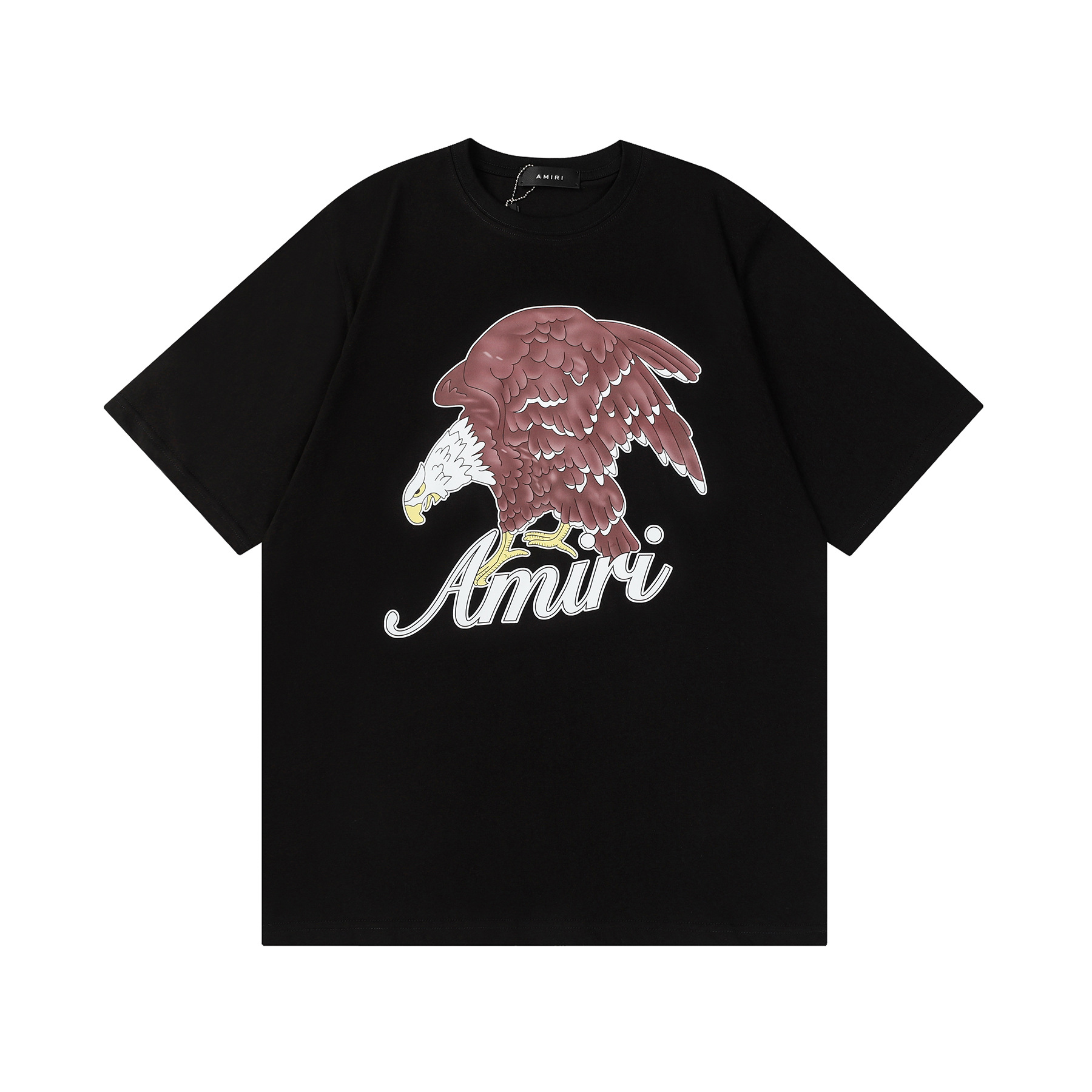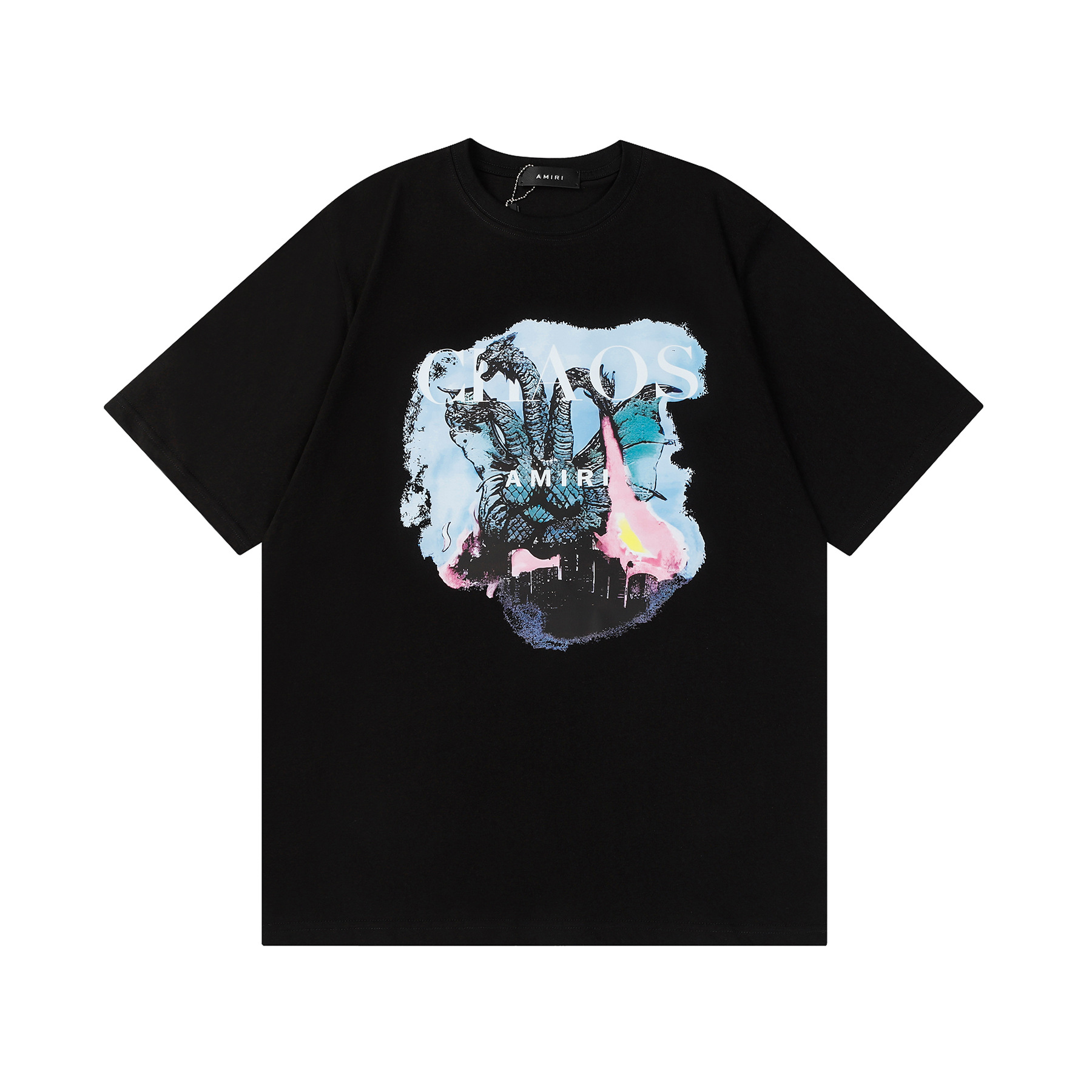 여름 새로운 국경 트렌디 브랜드 AMI 크루 넥 퓨어 코튼 남성과 여성의 인쇄 느슨한 캐주얼 반팔 티셔츠 재고 도매