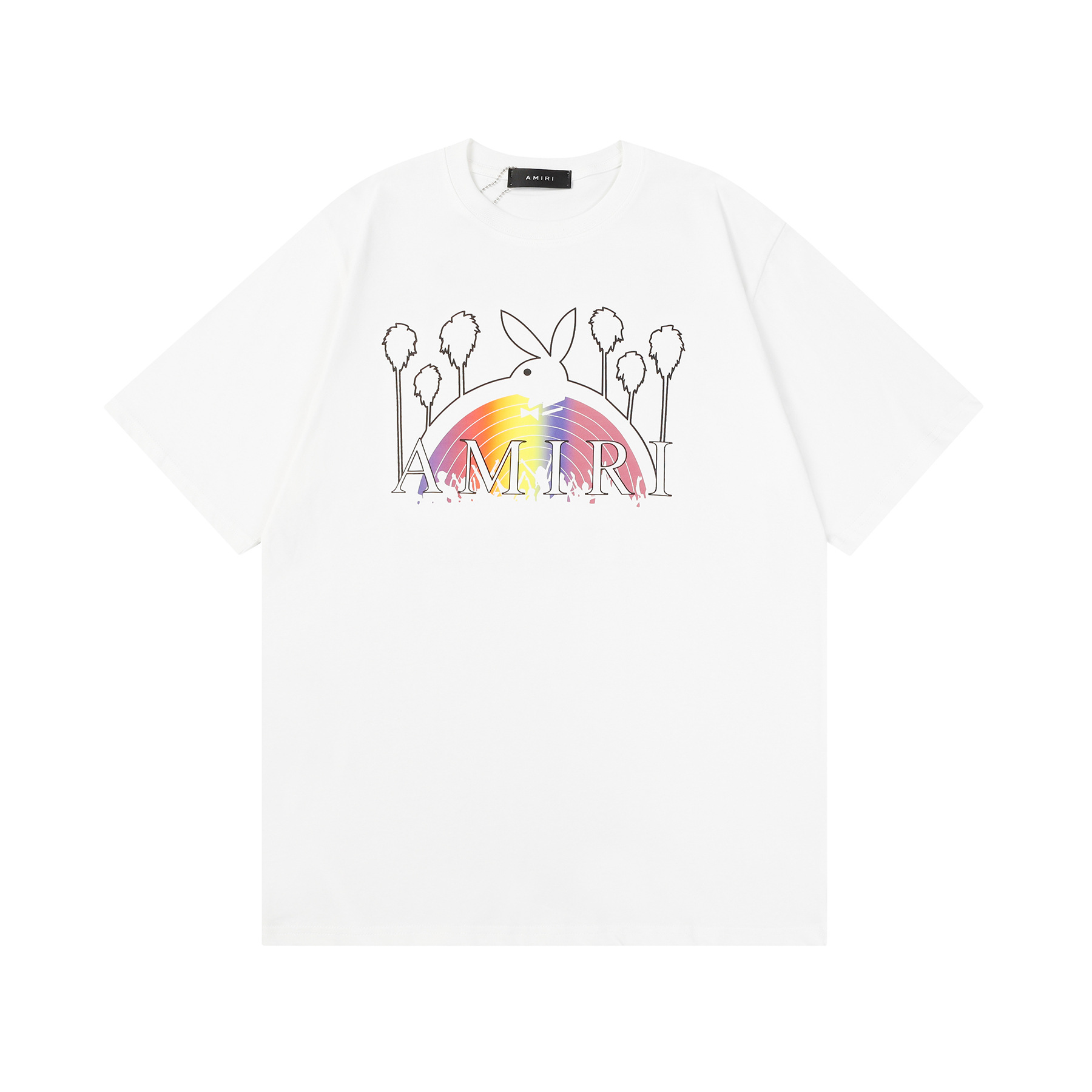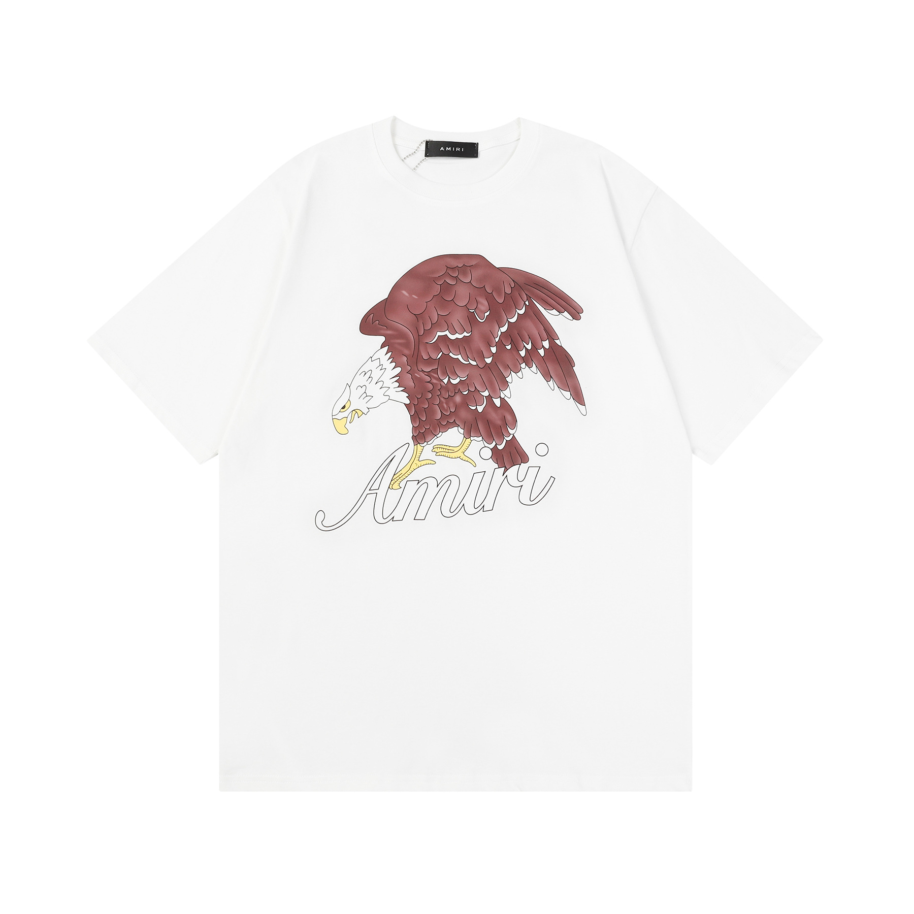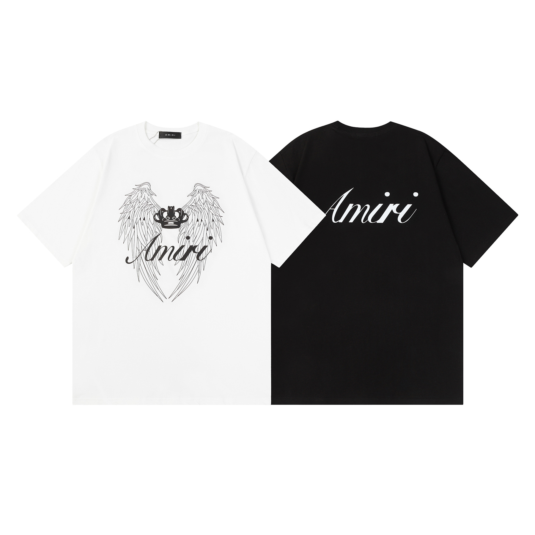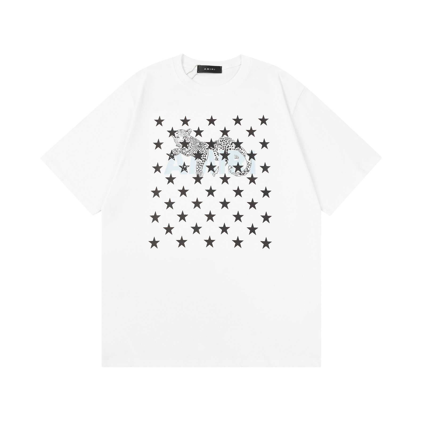 여름 새로운 국경 트렌디 브랜드 AMI 크루 넥 퓨어 코튼 남성과 여성의 인쇄 느슨한 캐주얼 반팔 티셔츠 재고 도매