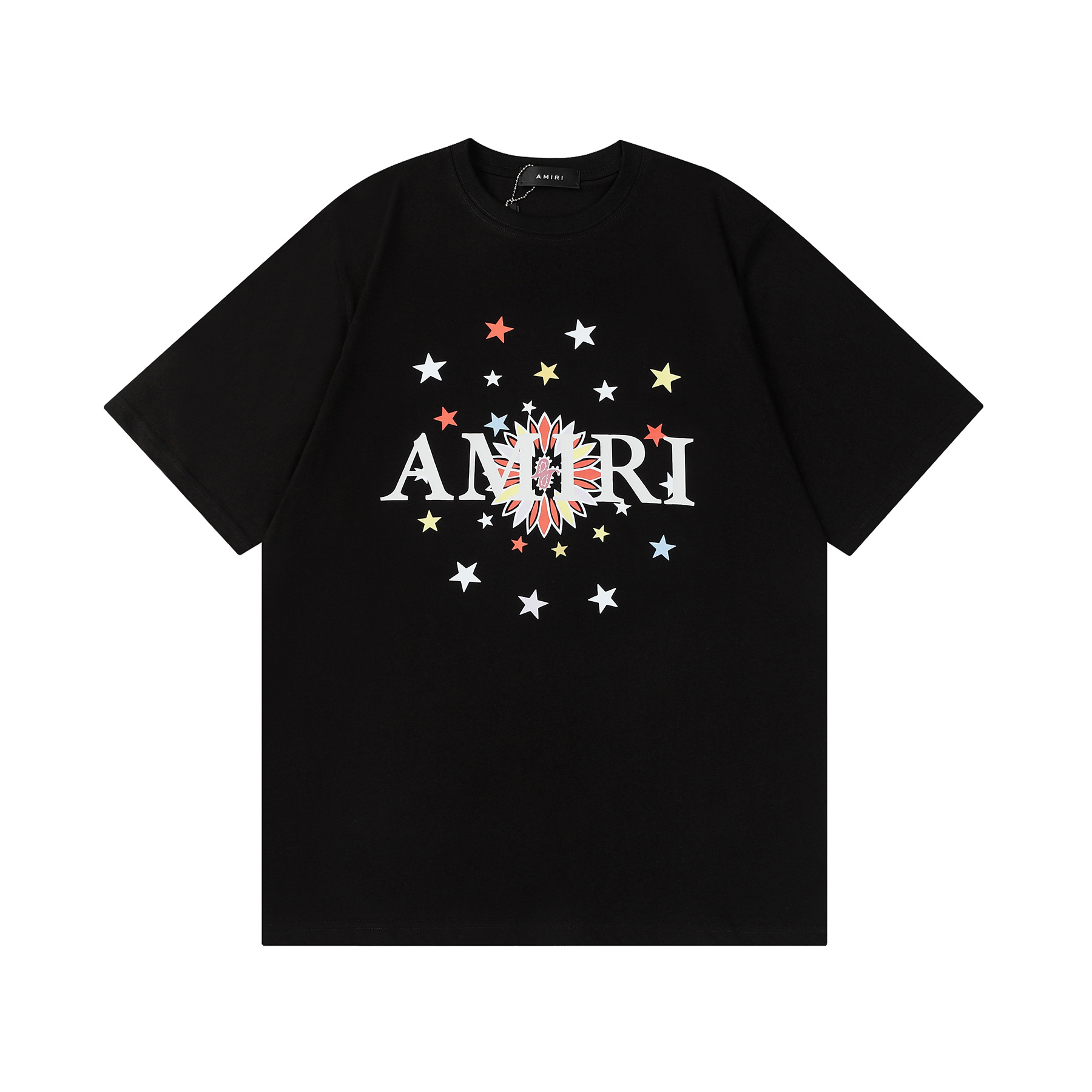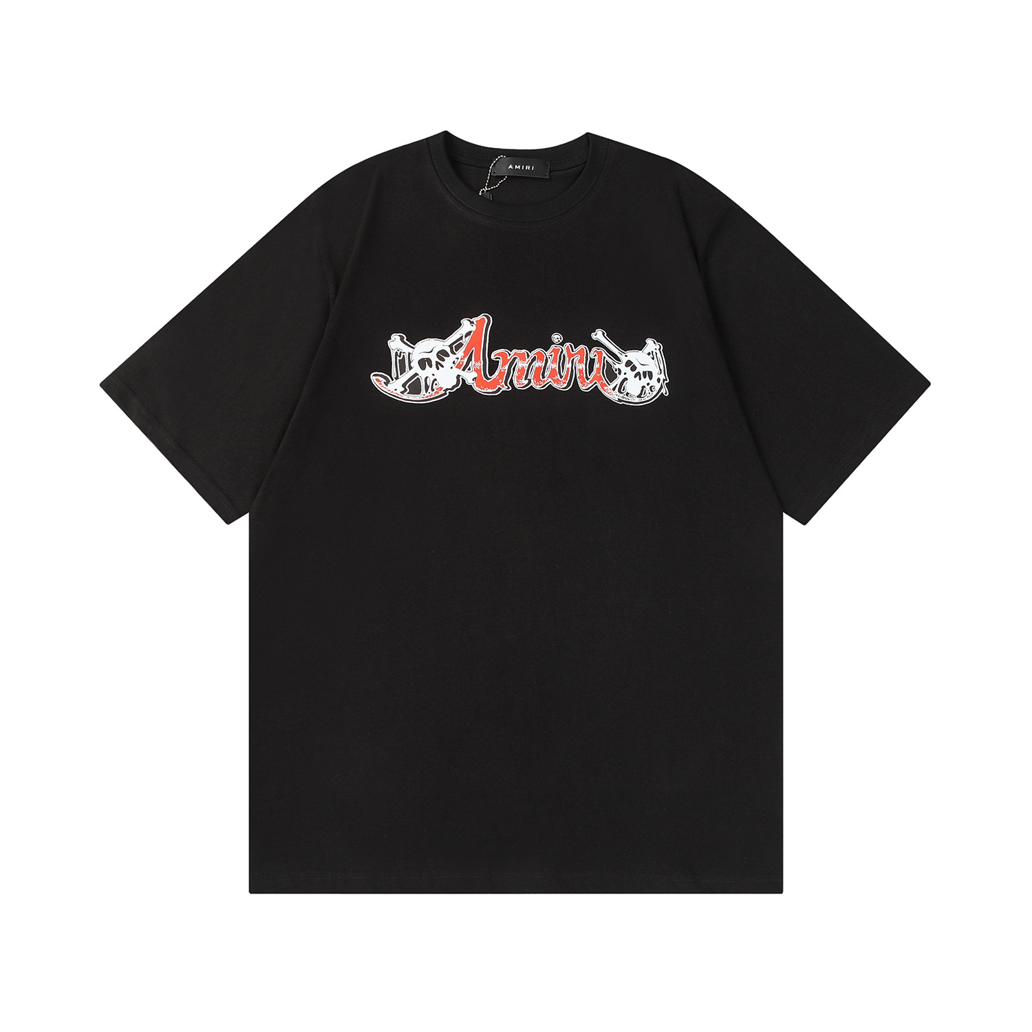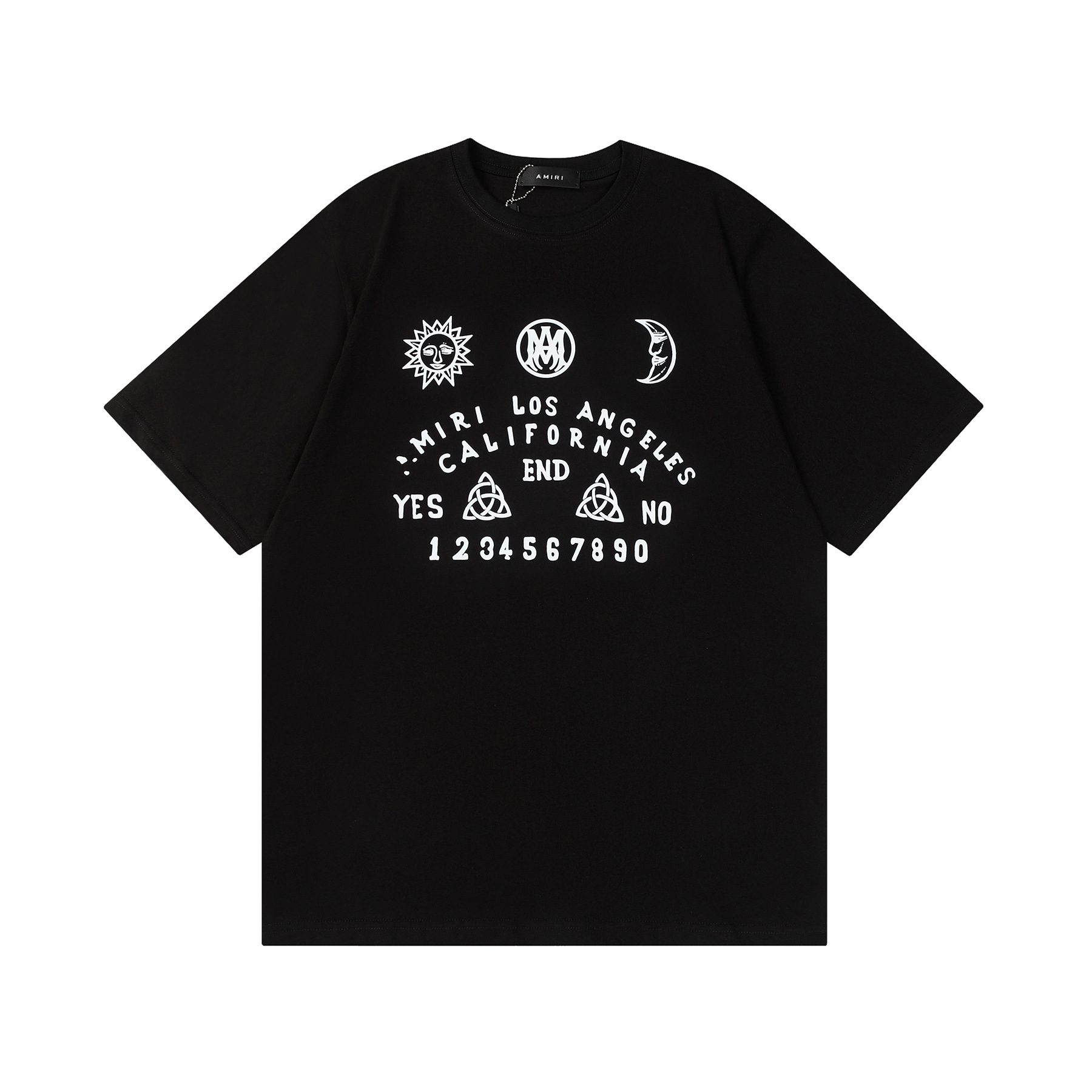 여름 새로운 국경 트렌디 브랜드 AMI 크루 넥 퓨어 코튼 남성과 여성의 인쇄 느슨한 캐주얼 반팔 티셔츠 재고 도매스토어 가기