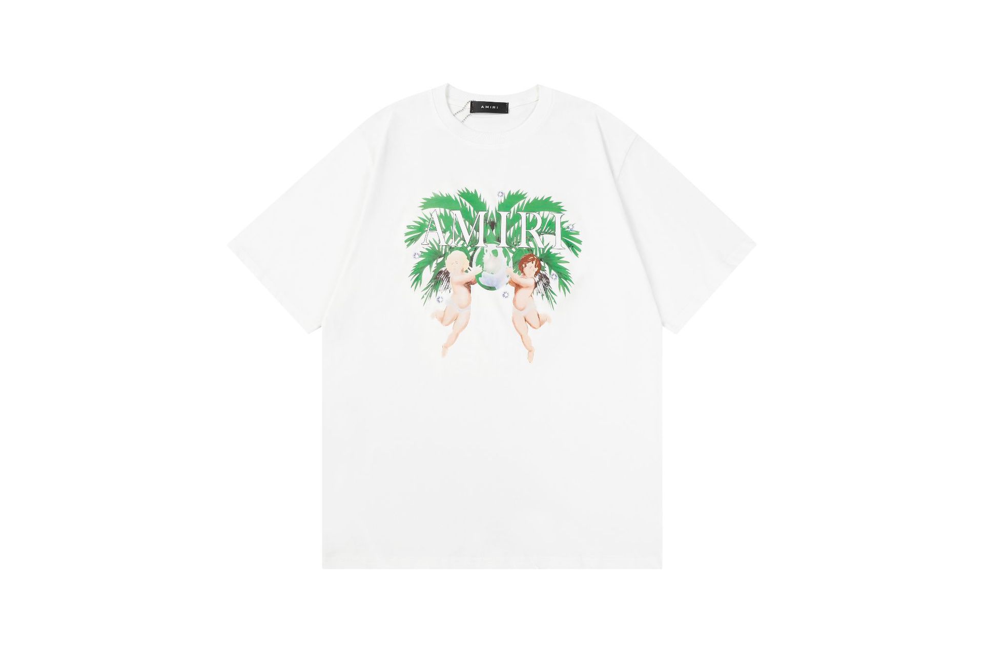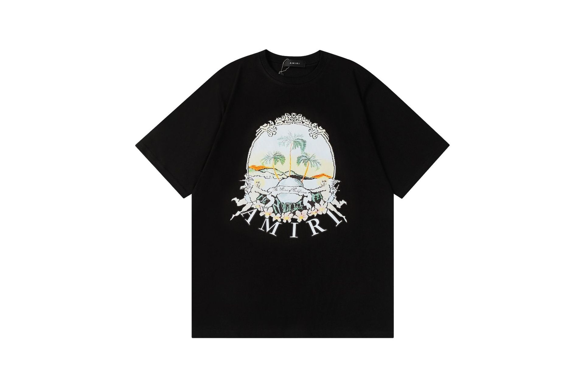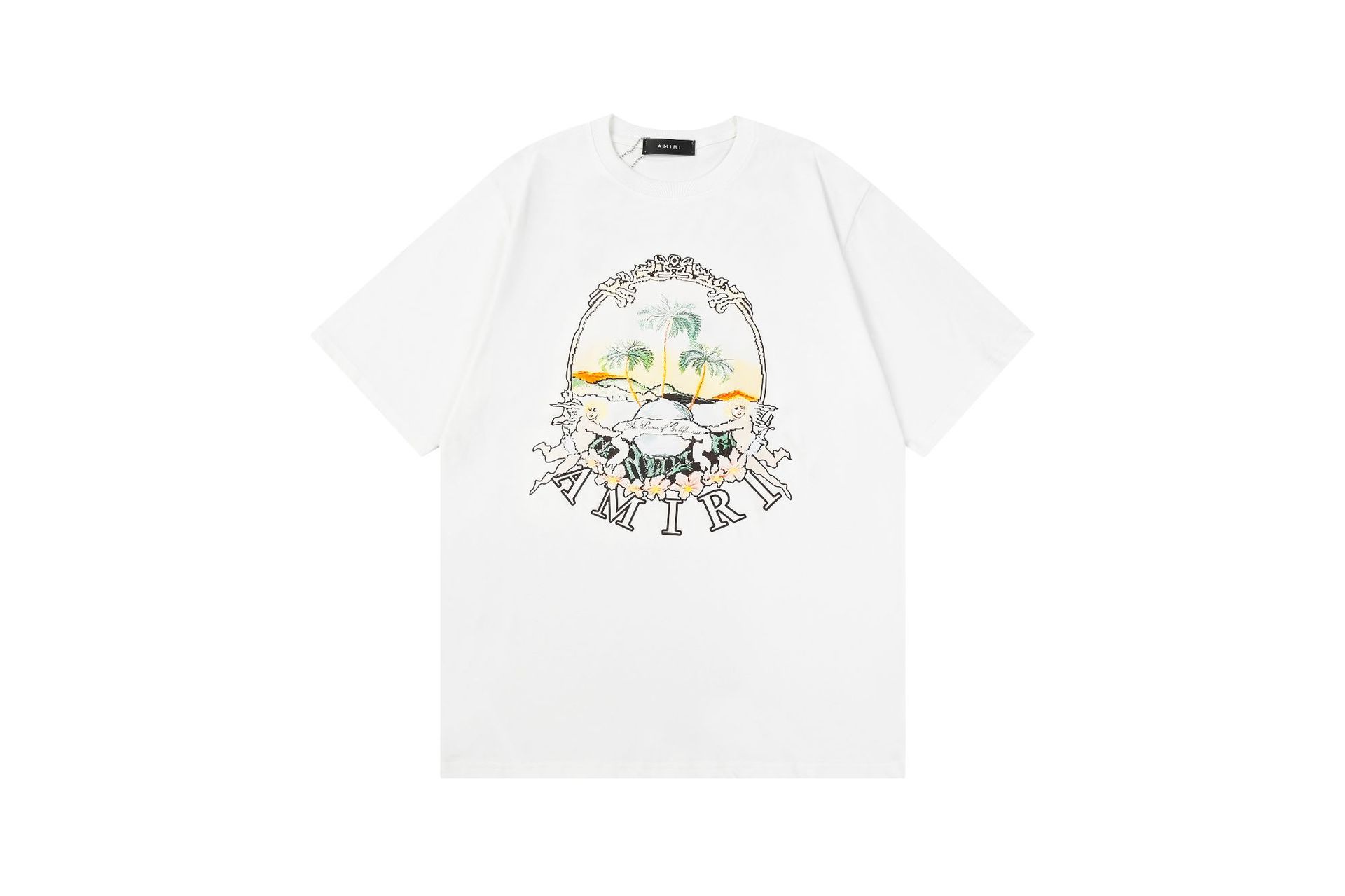 여름 새로운 국경 트렌디 브랜드 AMI 크루 넥 퓨어 코튼 남성과 여성의 인쇄 느슨한 캐주얼 반팔 티셔츠 재고 도매스토어 가기