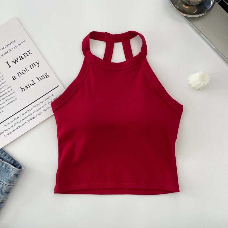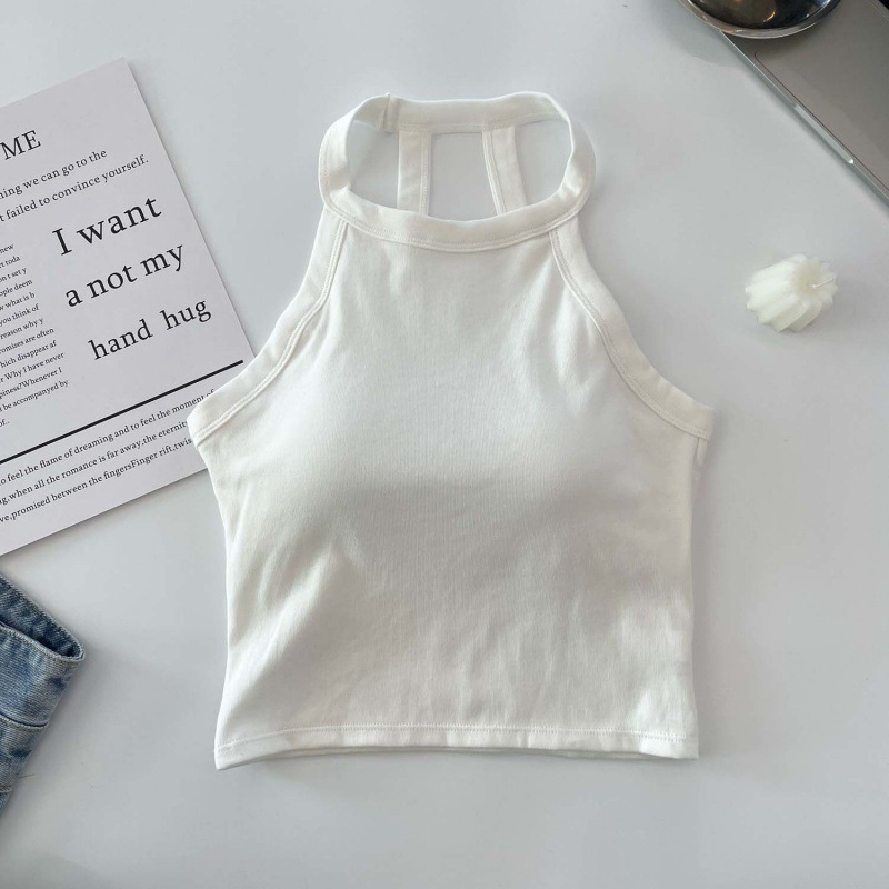 새로운 스타일 목 교수형 슬림 조끼 벨트 가슴 패드 내부 착용 외부 착용 슬림 슬리밍 스파이스 소녀 아름다운 백 짧은 달콤한 핫 탑 여성스토어 가기