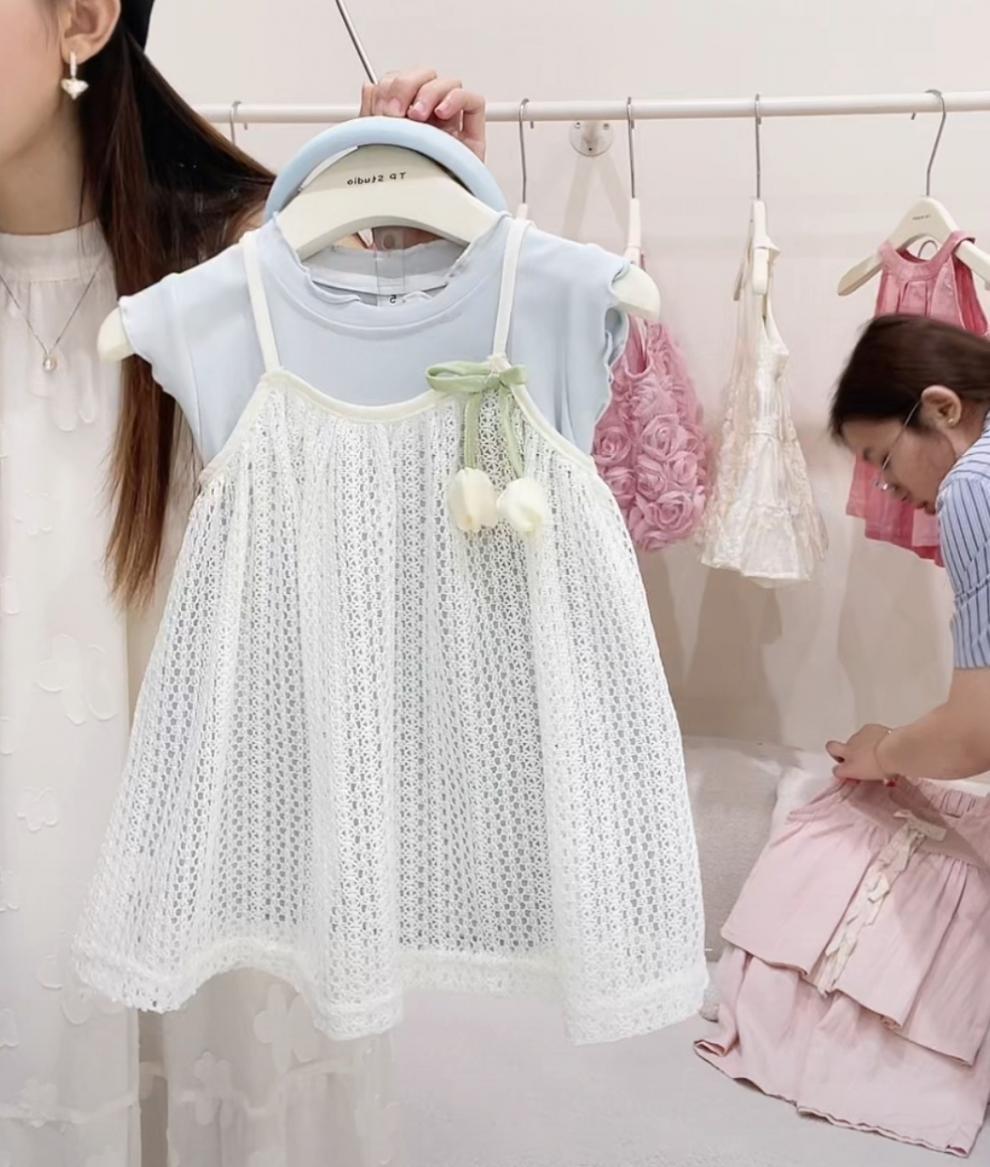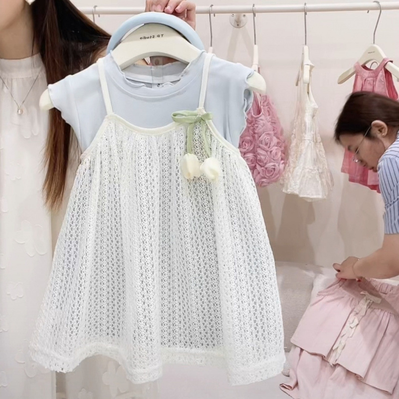 여자 세트 2025 새 여름 원피스 한국식 서양식 소녀의 중간 길이 중공 슬립 스커트스토어 가기