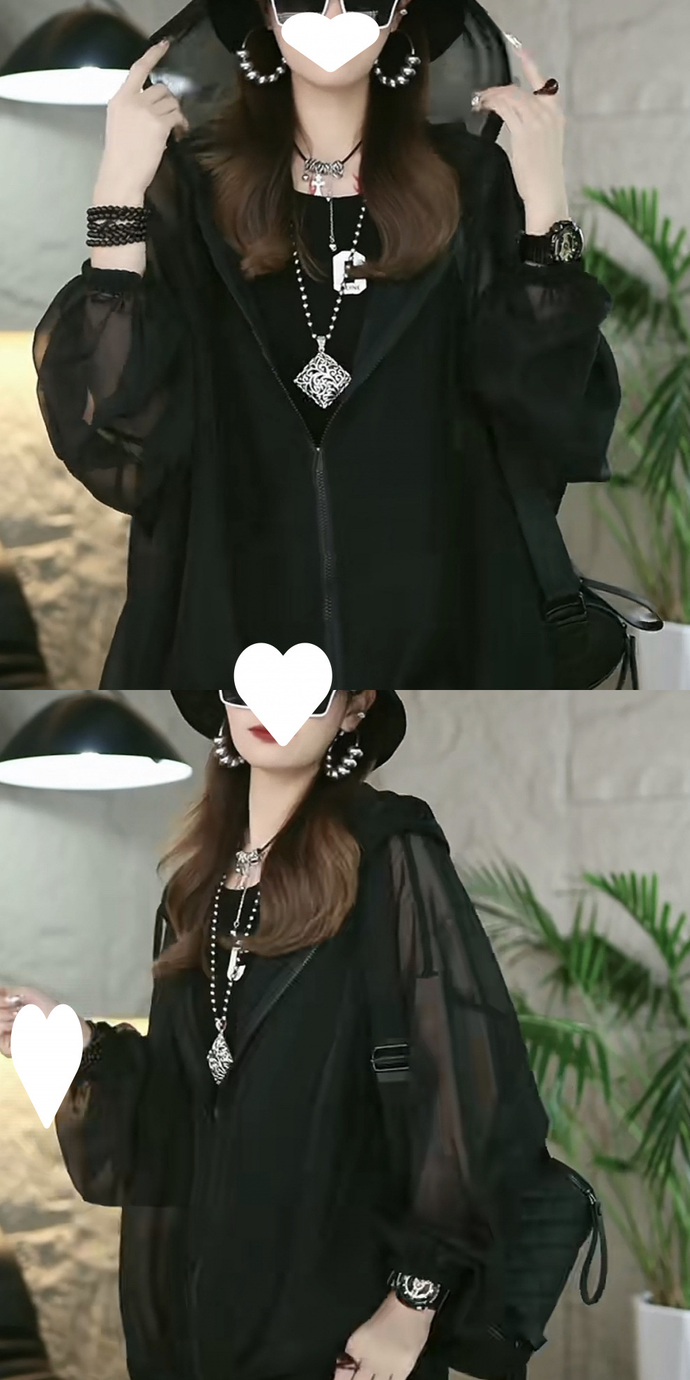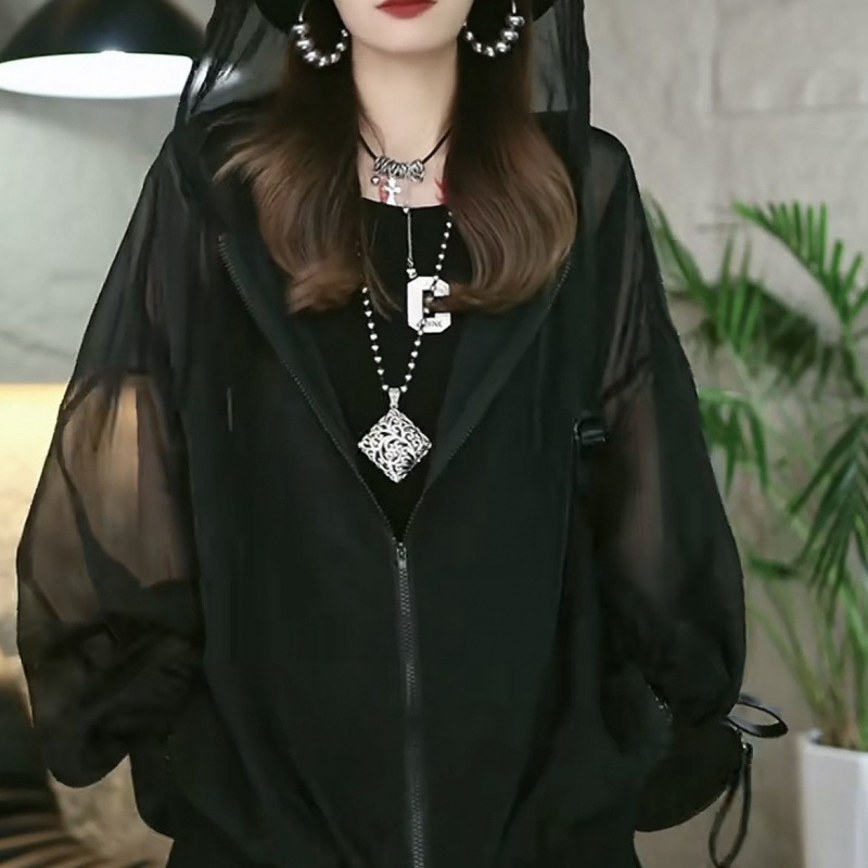 후드 드로우 스트링 디자인 여름 새로운 간단한 캐주얼 패션 솔리드 컬러 진주 빛 통기성 태양 보호 의류스토어 가기