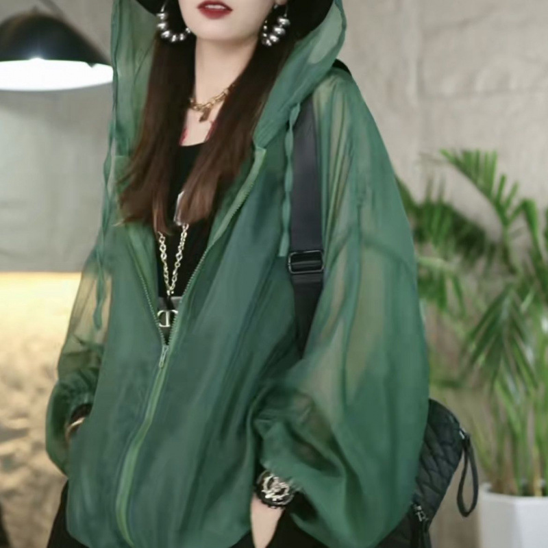 후드 드로우 스트링 디자인 여름 새로운 간단한 캐주얼 패션 솔리드 컬러 진주 빛 통기성 태양 보호 의류