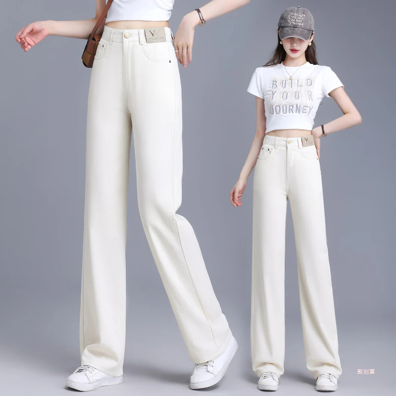 화이트 슬림핏 와이드 레그 청바지 여성용 2026 봄 여름 신상 하이웨이스트 슬림핏 루즈핏 캐주얼 만능 스트레이트 팬츠