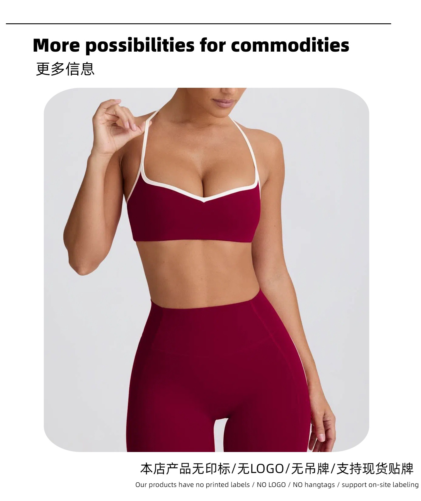 유럽과 미국 국경 간 누드 요가 세트 피부 친화적 인 통기성 충격 방지 스포츠 최고 심장 엉덩이 피트니스 훈련 세트