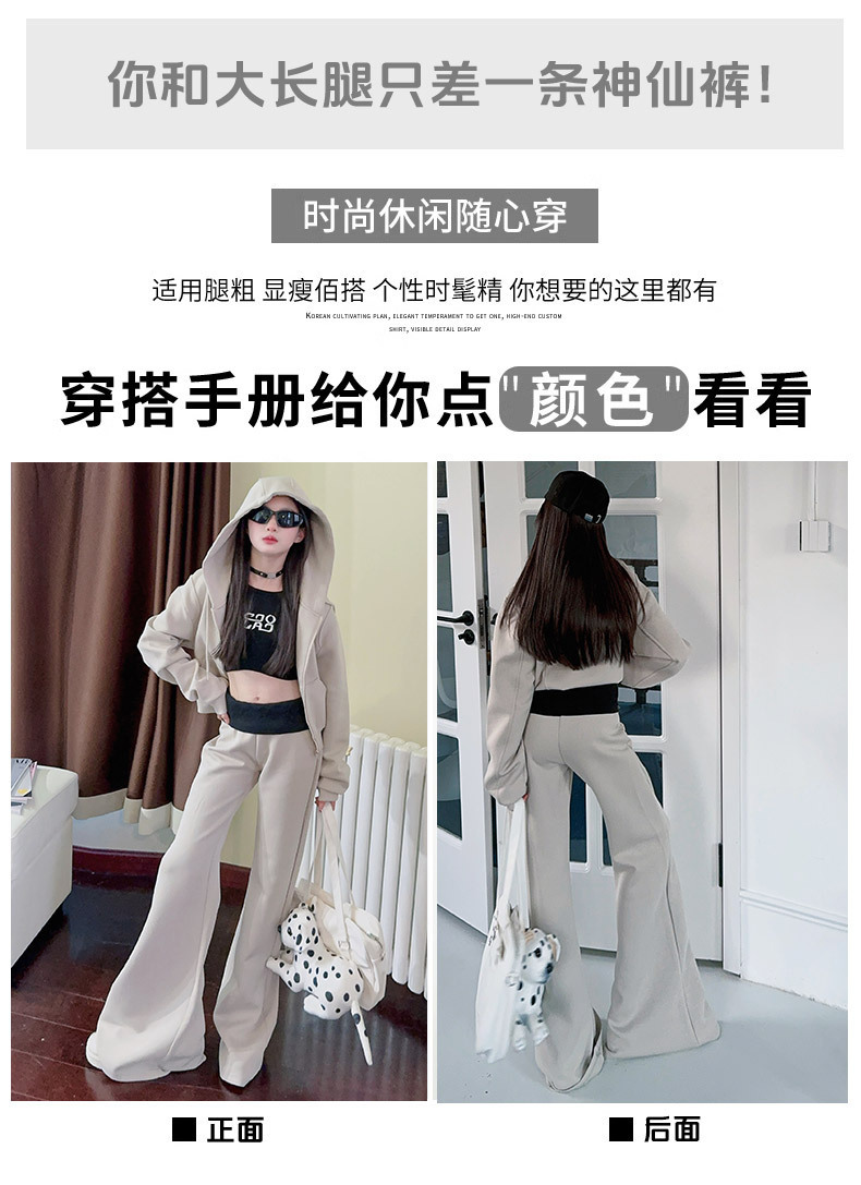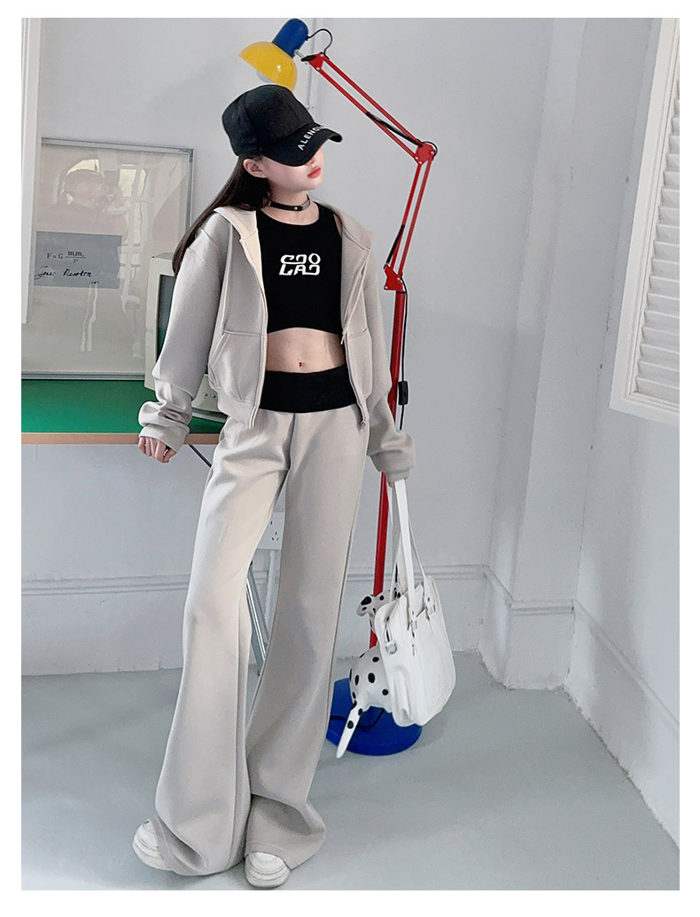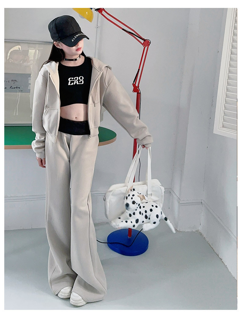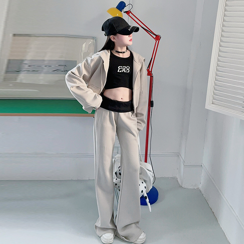소녀 2025 봄 게으른 스타일 세트 후드 스웨트 코트 높은 허리 넓은 다리 바지 캐주얼 스포츠 세트