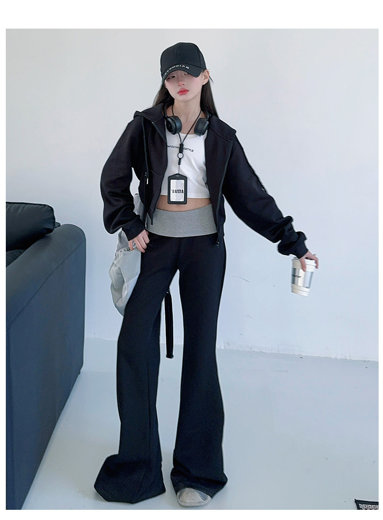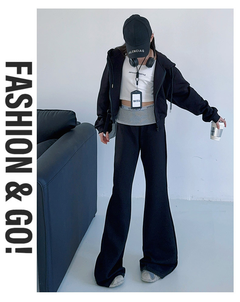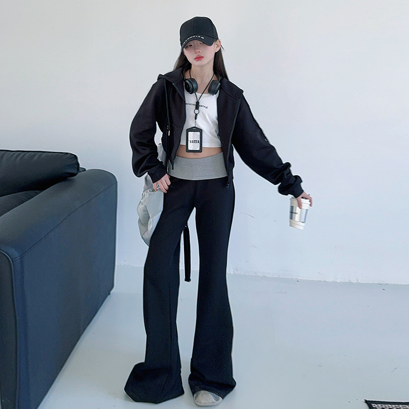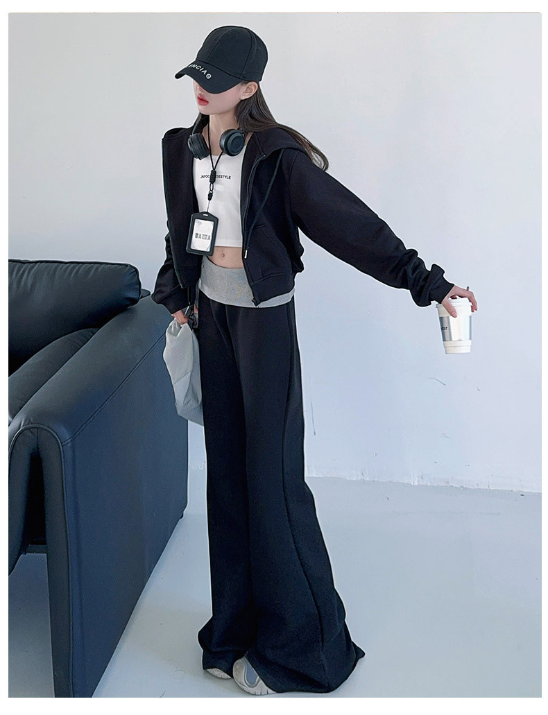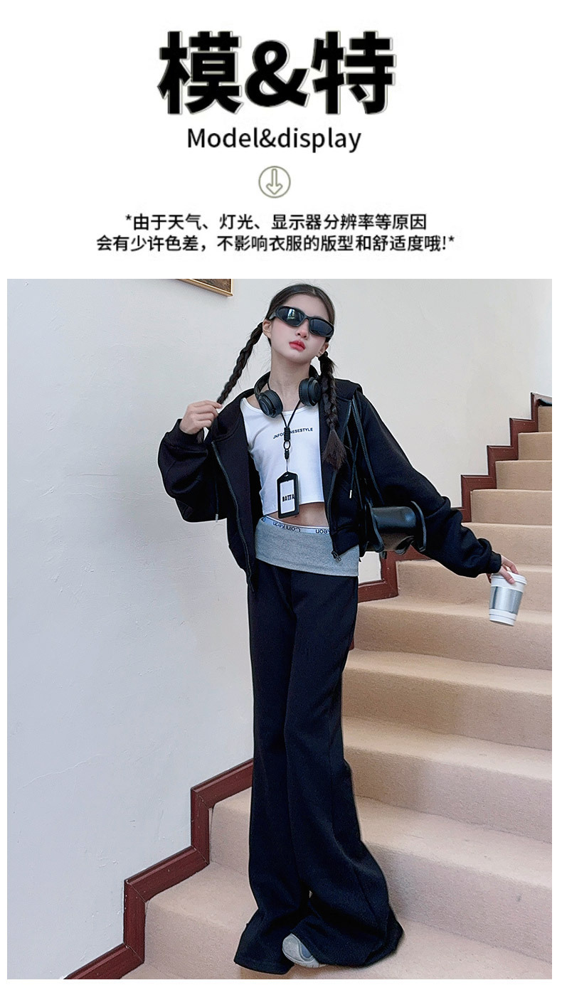 소녀 2025 봄 게으른 스타일 세트 후드 스웨트 코트 높은 허리 넓은 다리 바지 캐주얼 스포츠 세트