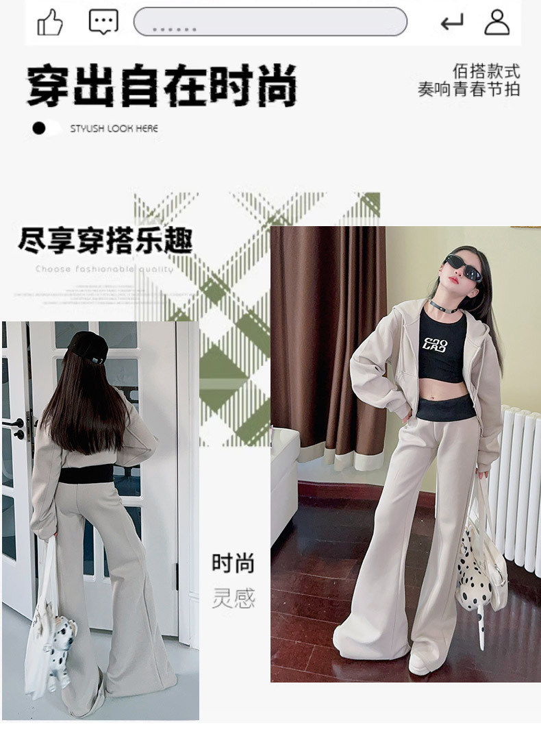소녀 2025 봄 게으른 스타일 세트 후드 스웨트 코트 높은 허리 넓은 다리 바지 캐주얼 스포츠 세트스토어 가기