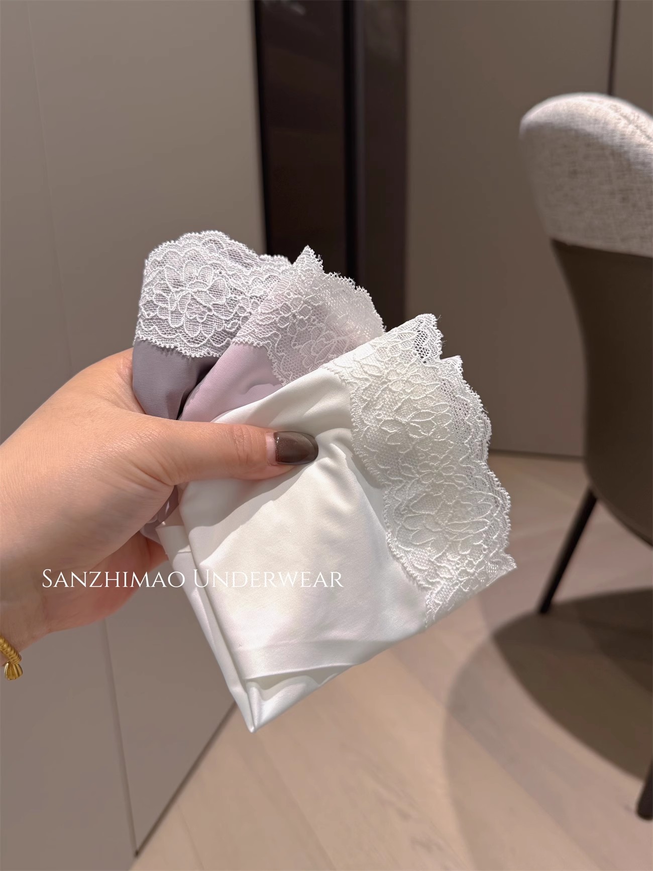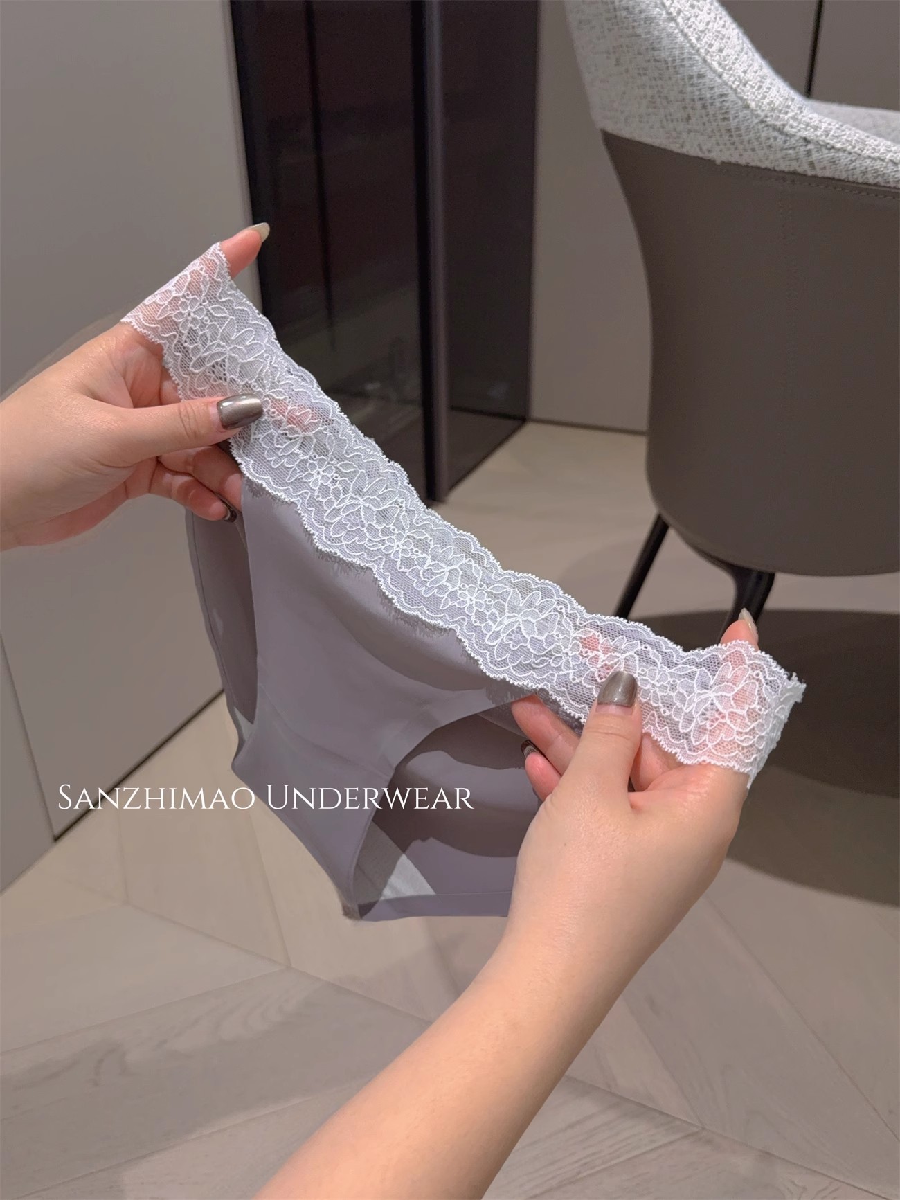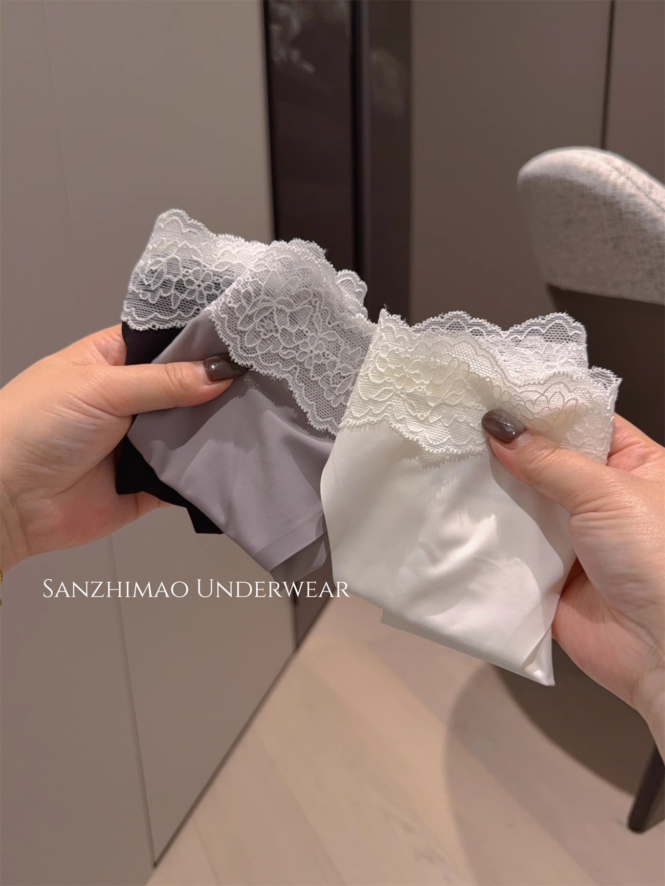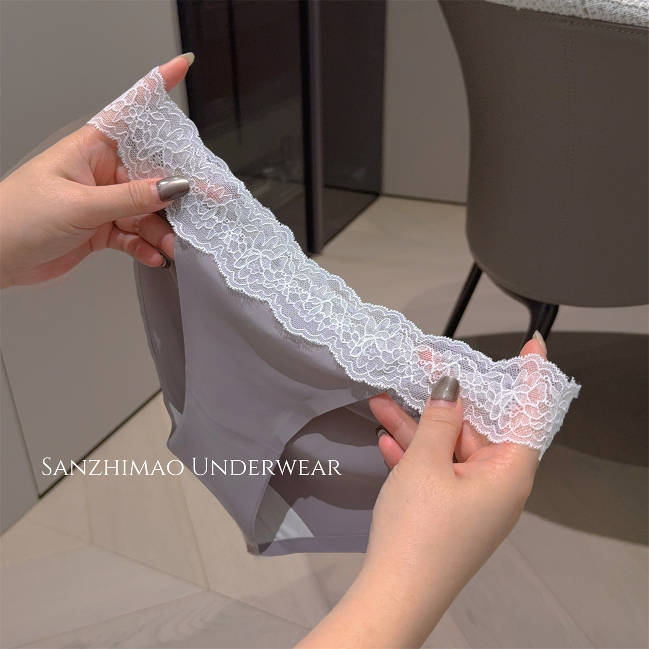 플라워 스토리 프랑스 섹시한 추적없는 아이스 실크 속옷 소녀 새로운 레이스 가장자리 순수한 낮은 허리 브리프