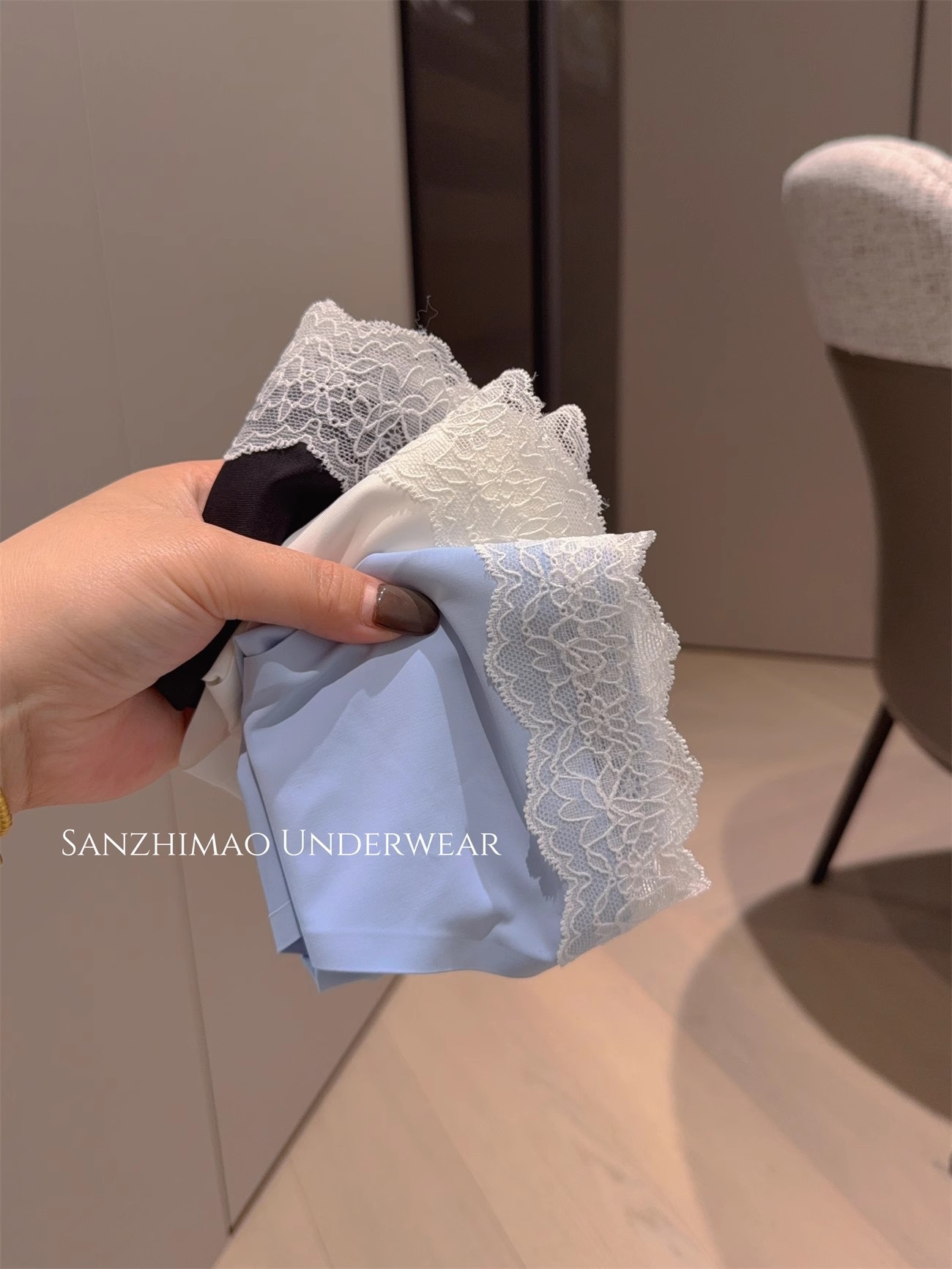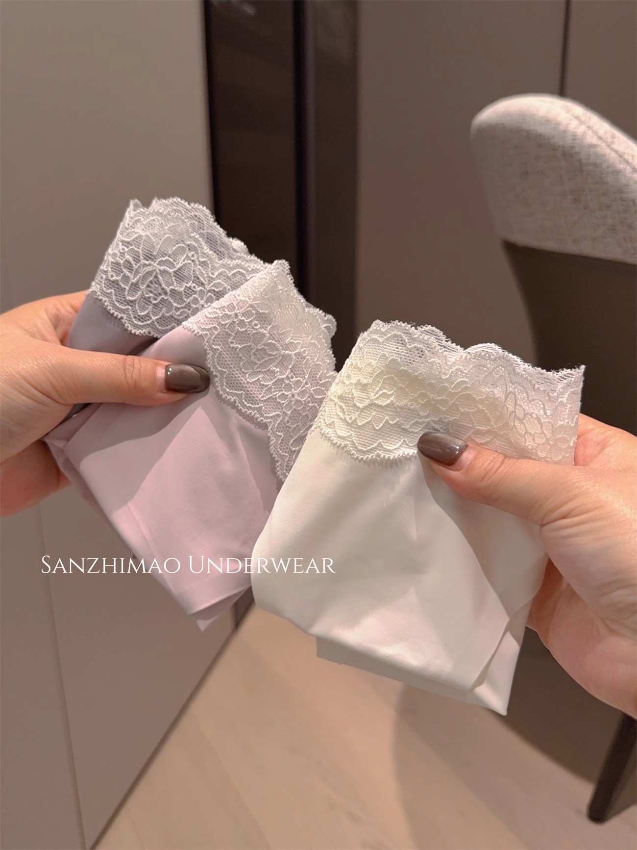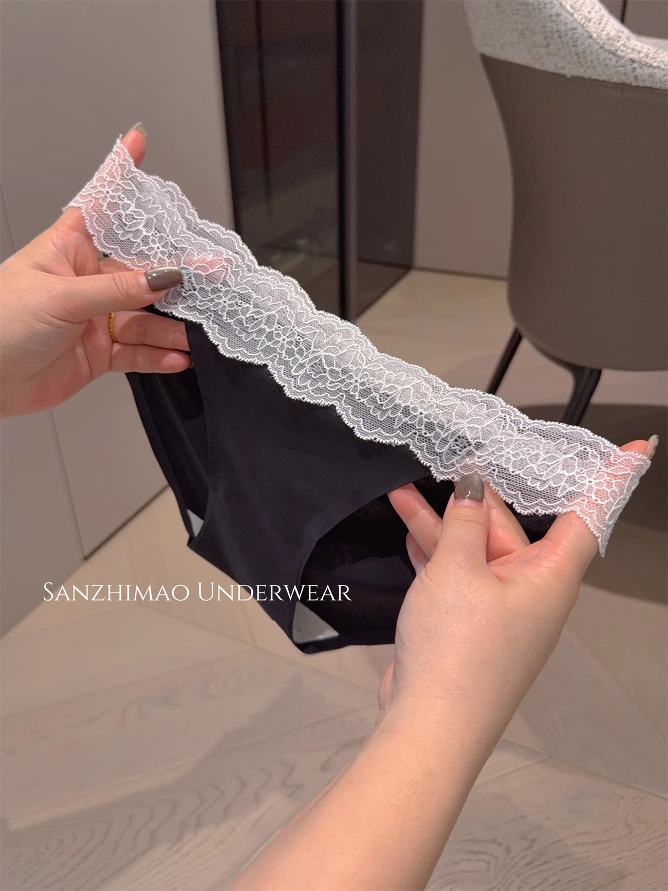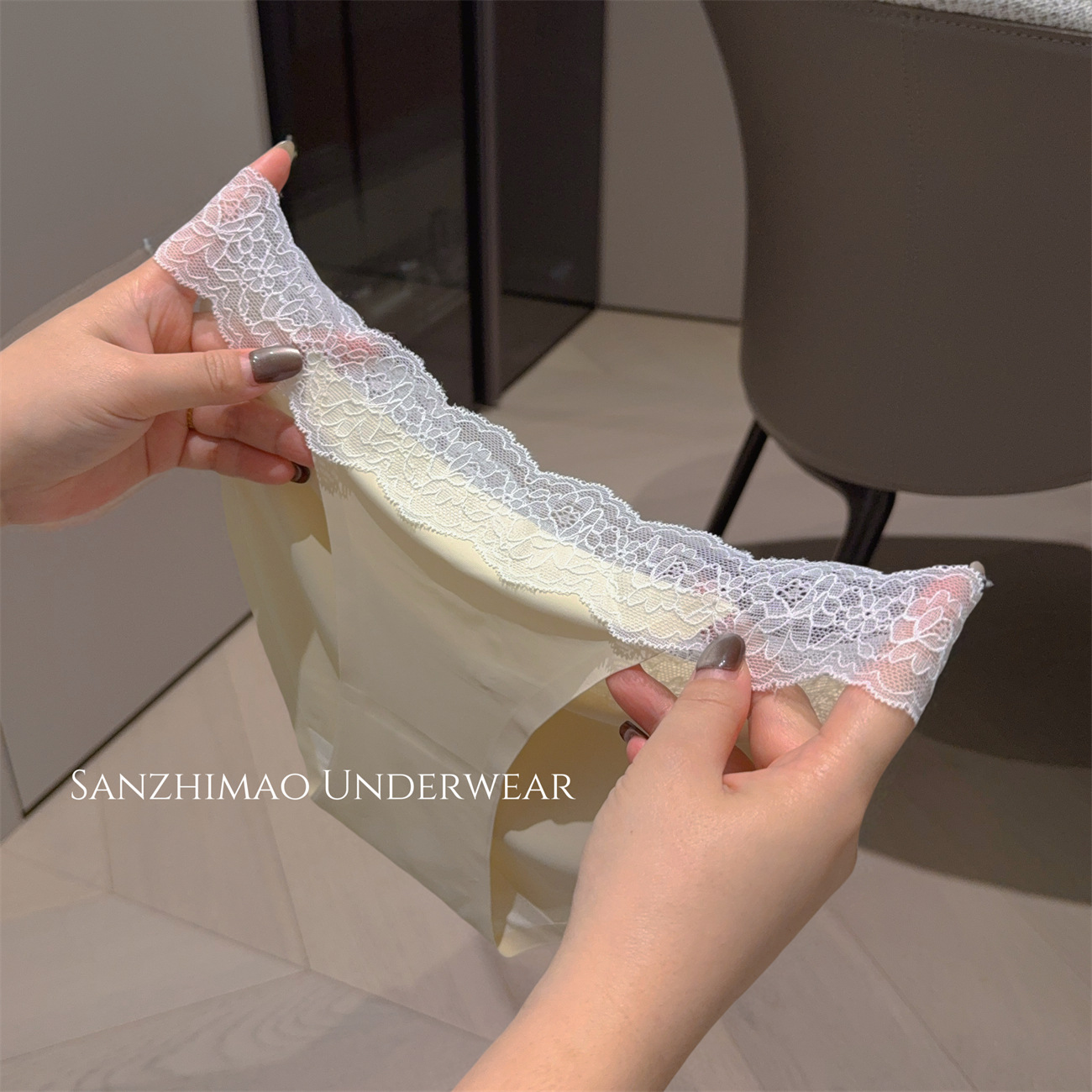 플라워 스토리 프랑스 섹시한 추적없는 아이스 실크 속옷 소녀 새로운 레이스 가장자리 순수한 낮은 허리 브리프