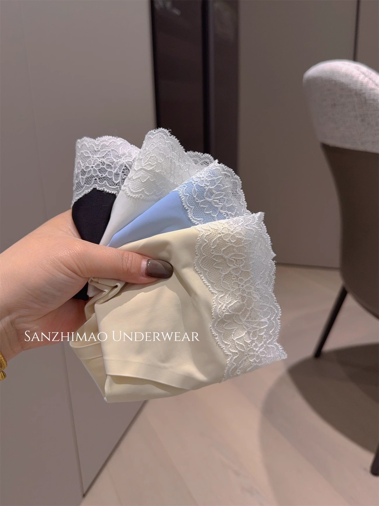 플라워 스토리 프랑스 섹시한 추적없는 아이스 실크 속옷 소녀 새로운 레이스 가장자리 순수한 낮은 허리 브리프스토어 가기
