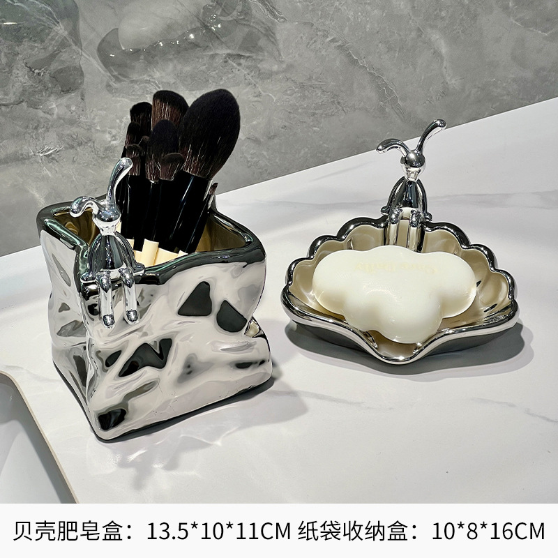 • [실버] 쉘 비누 접시 + 종이봉투 수납통✦✦