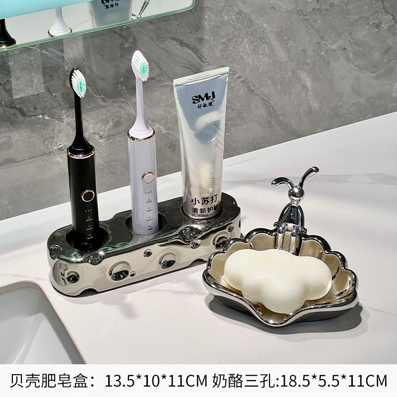 • [실버] 쉘 비누 접시 + 치즈 3구 칫솔꽂이✦✦