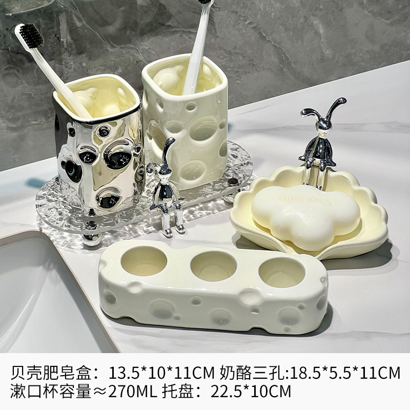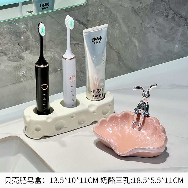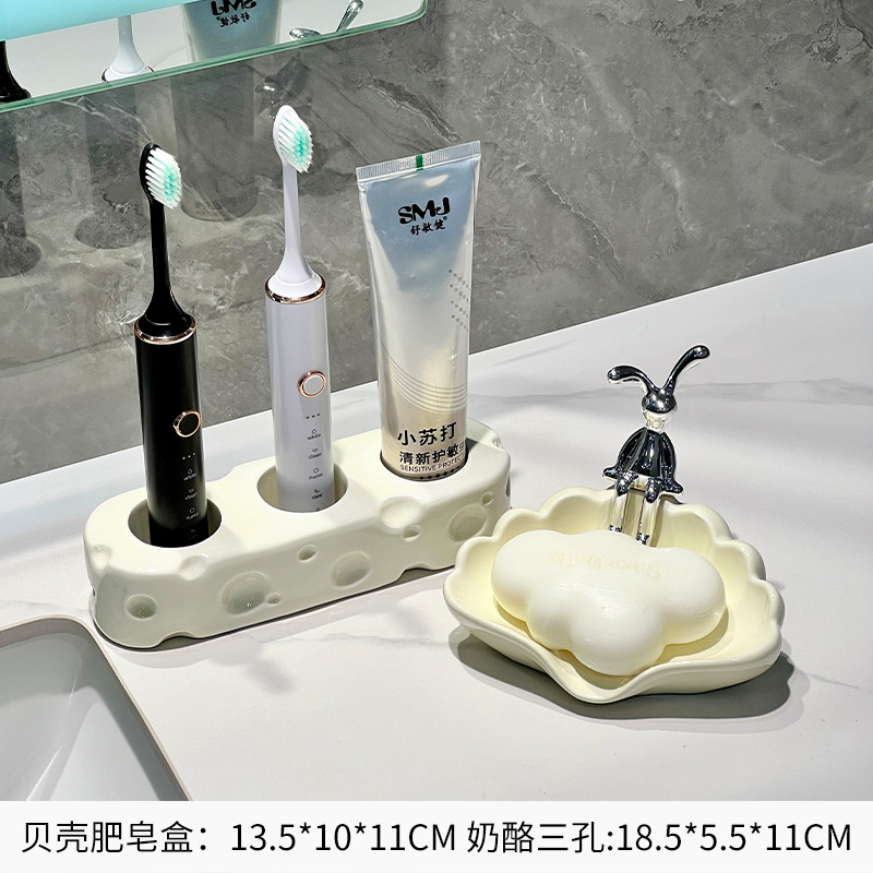 • [커스터드] 쉘 비누 접시 + 치즈 구강 세정제 컵 + 치즈 3구 칫솔 홀더✦✦