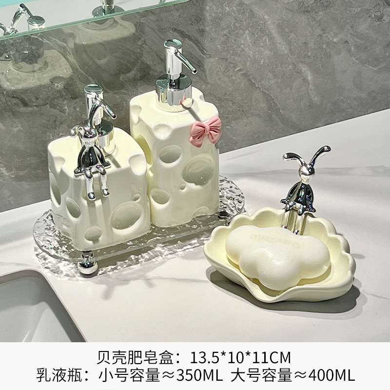 • [핑크] 쉘 비누 접시 + [대 + 소] 치즈 로션 병✦✦