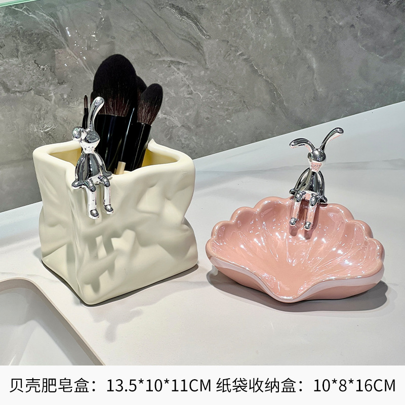 • [핑크] 쉘 비누 접시 + 종이봉투 수납통✦✦