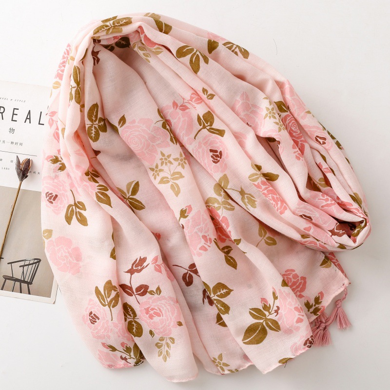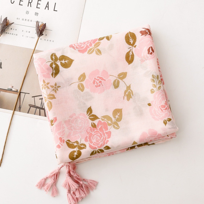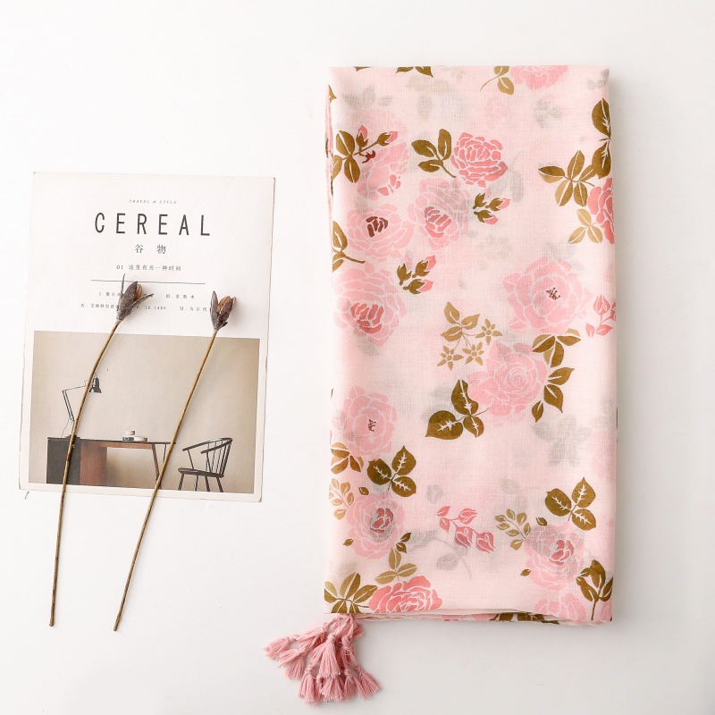 대외 무역 국경 수출 복고풍면과 린넨 손 스카프 두꺼운 핑크 꽃 스카프 따뜻한 술 목도리 액세서리