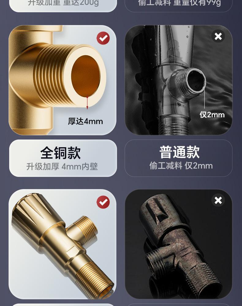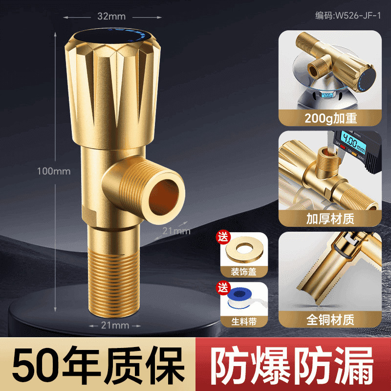 모든 구리 삼각형 밸브 냉수 및 뜨거운 보편적 인 물 절약 밸브 가정용 온수기 화장실 스위치 Lengthen 두꺼운 삼각형 밸브 대형