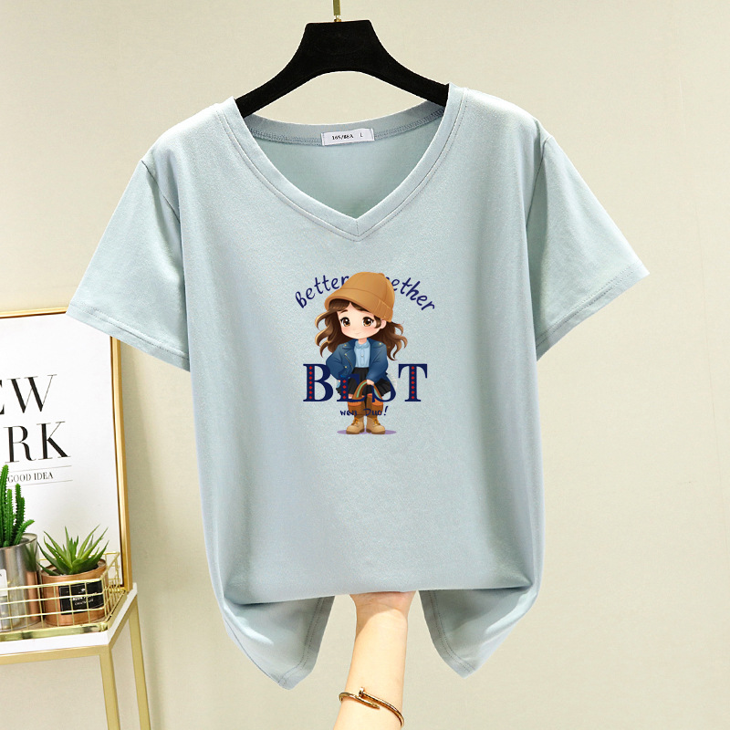 Baoge Yi 반팔 티셔츠 여자 2025 년 새 여름 느슨한 슬리밍 올 매치 프린트 탑스토어 가기