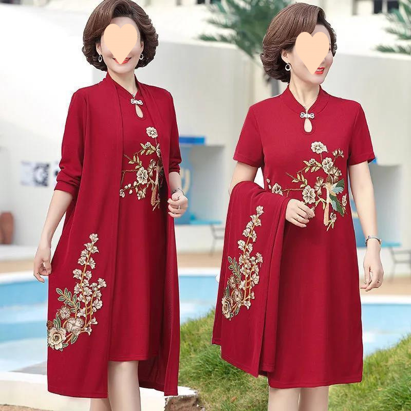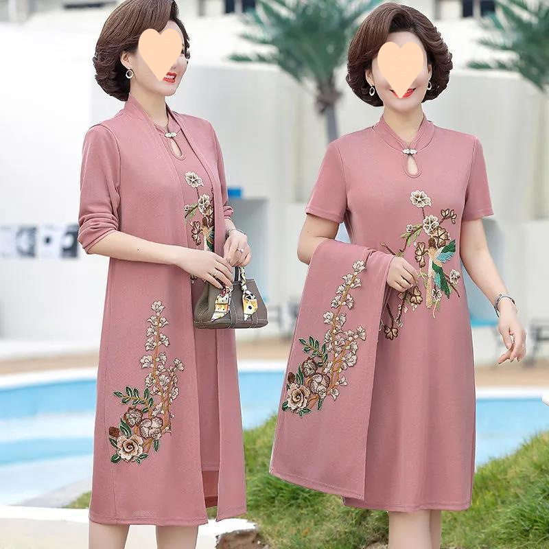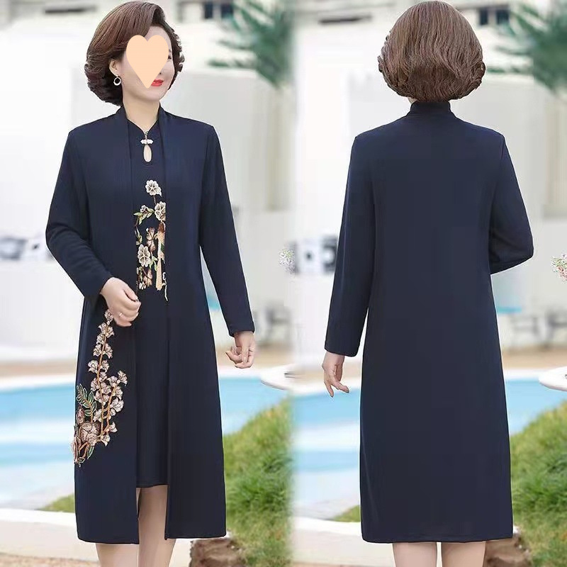 2025 새 중년 어머니 봄 · 가을 원피스 고귀한 청삼 중년 · 노인 여성 의류 수놓은 서양식 투피스 세트