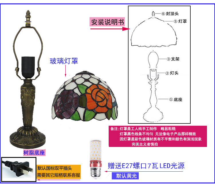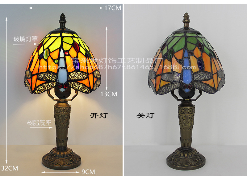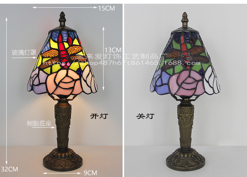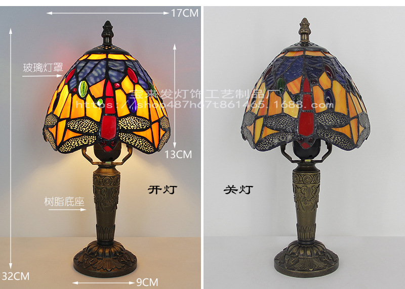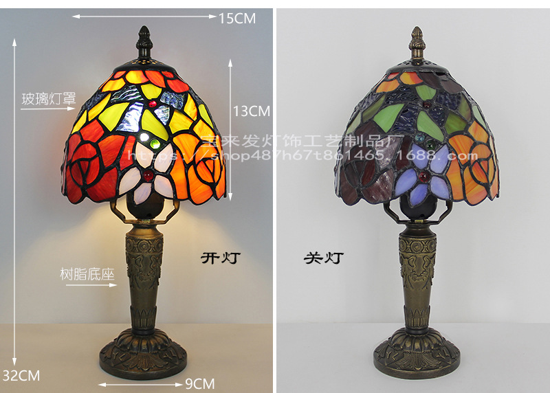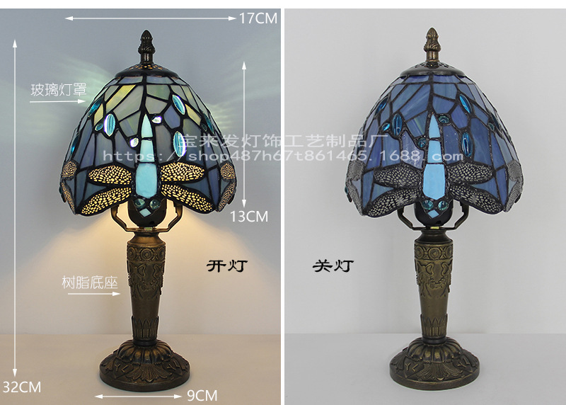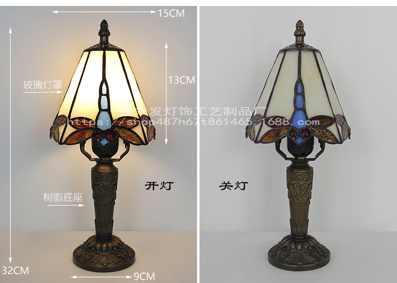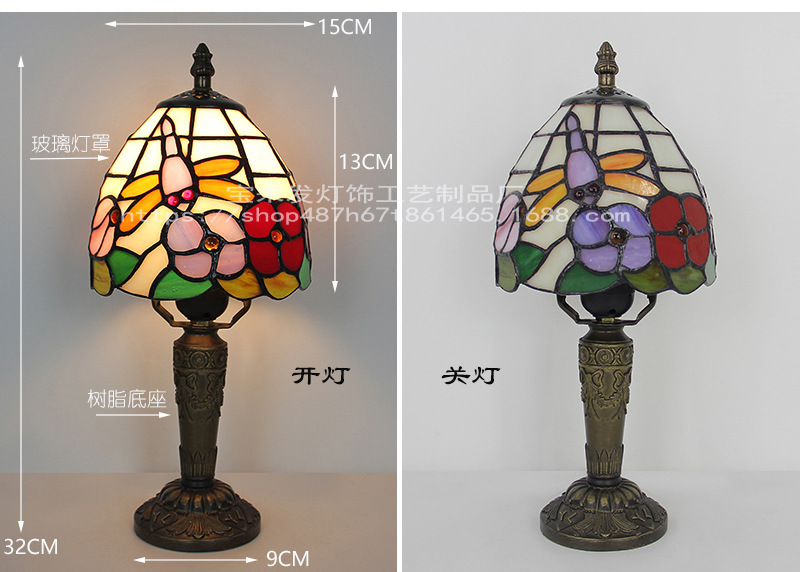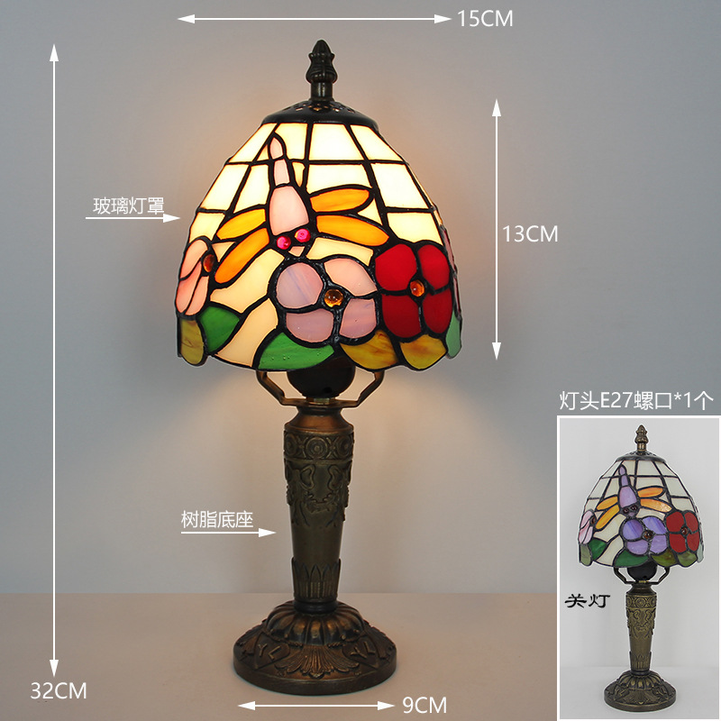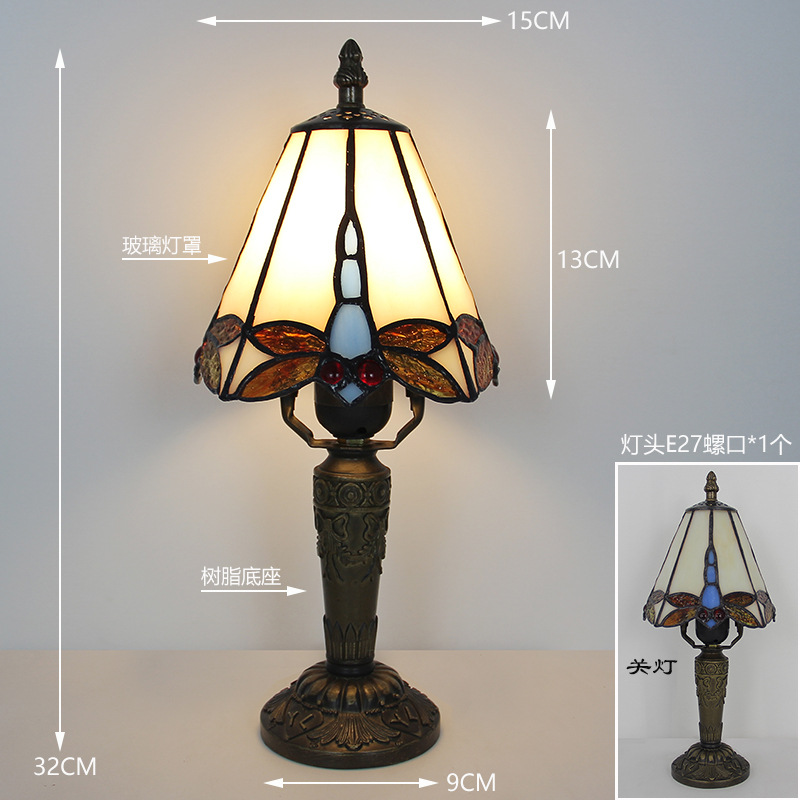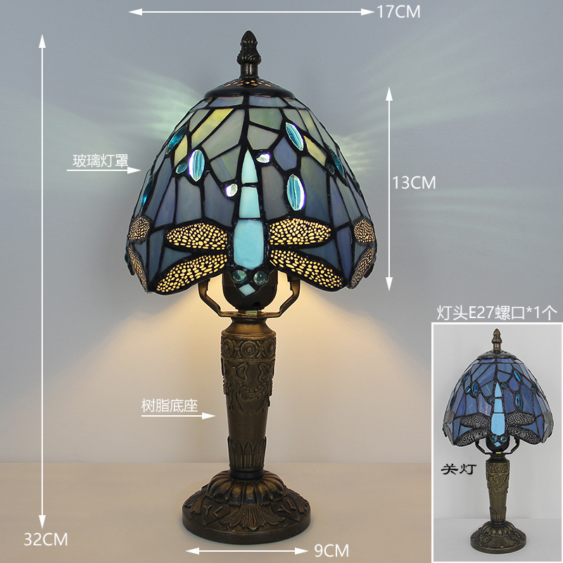 미국 레트로 침실 침실 램프 따뜻한 야간 조명 하이 엔드 티파니 스테인드 글라스 장식 테이블 램프스토어 가기