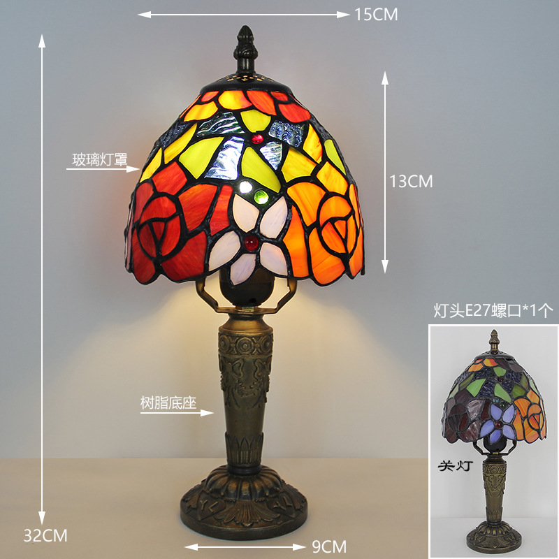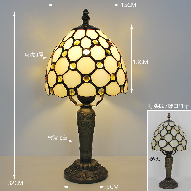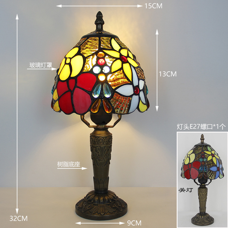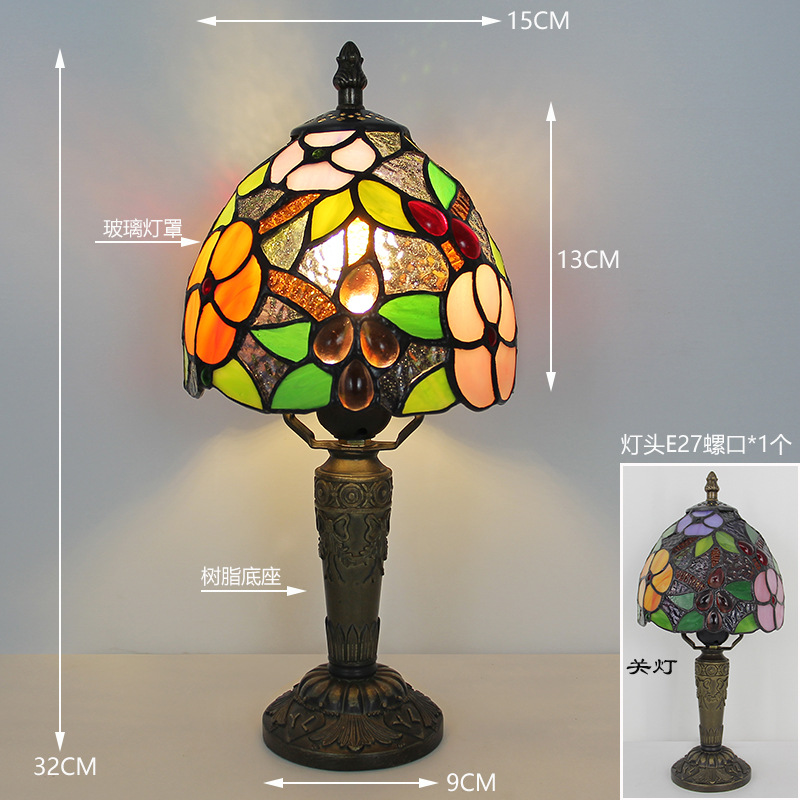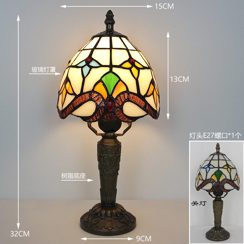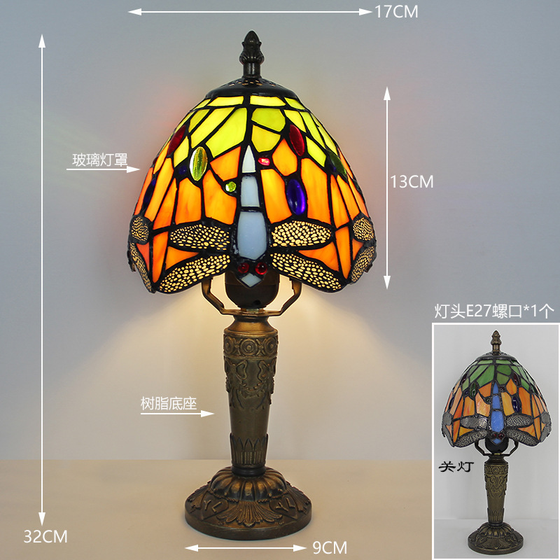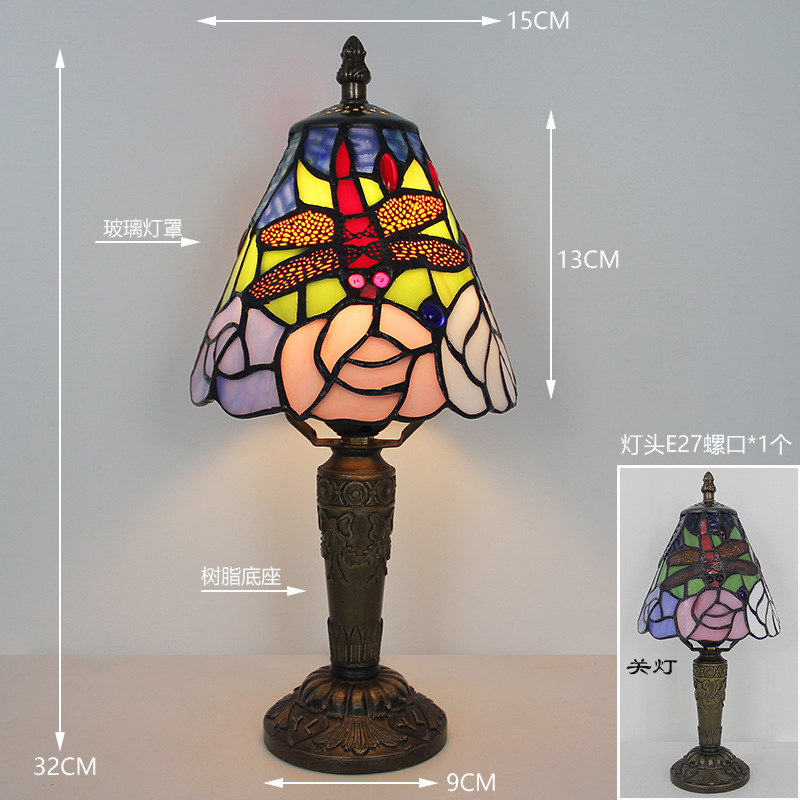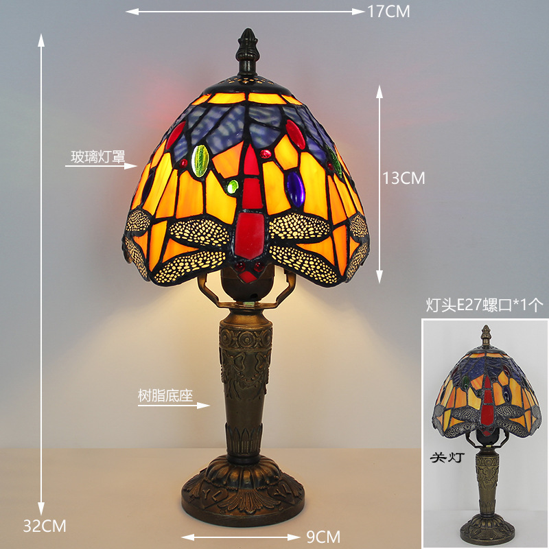 미국 레트로 침실 침실 램프 따뜻한 야간 조명 하이 엔드 티파니 스테인드 글라스 장식 테이블 램프