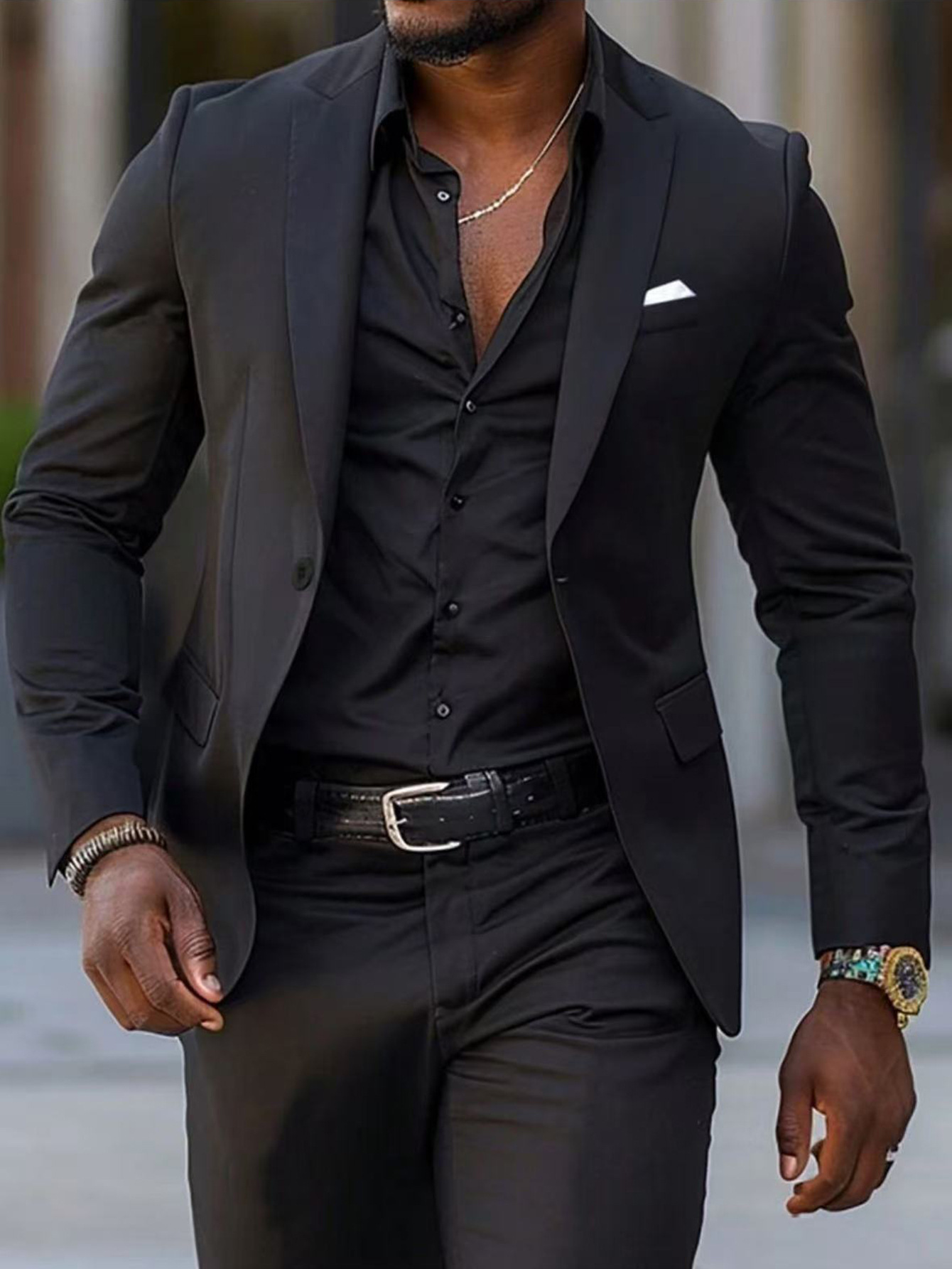 국경 간 뉴 남성 신랑 세트 세트 투피스 솔리드 컬러 슬림 핏 연회 원피스 세트 코트 바지스토어 가기
