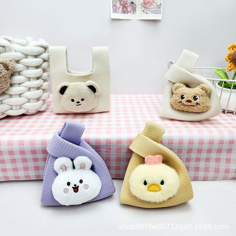 어린이 날 귀여운 동물 니트 동전 지갑 헤드폰 립스틱 동전 보관 키 어린이 학교 가방 펜던트스토어 가기
