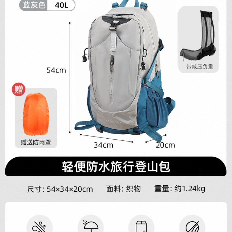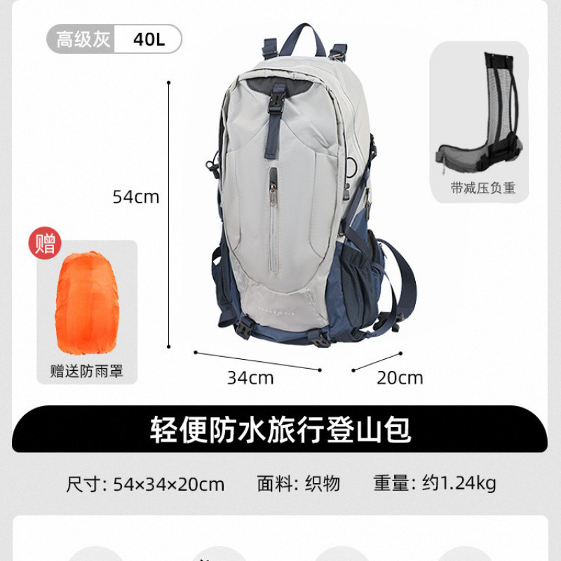 • 회색 40L에는 레인 커버와 감압 백팩이 함께 제공됩니다.