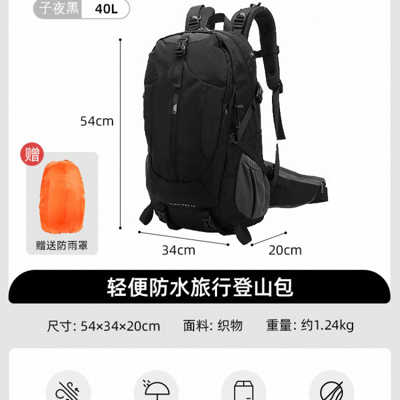 • Midnight Black 40L에는 레인 커버와 감압 백팩이 함께 제공됩니다.