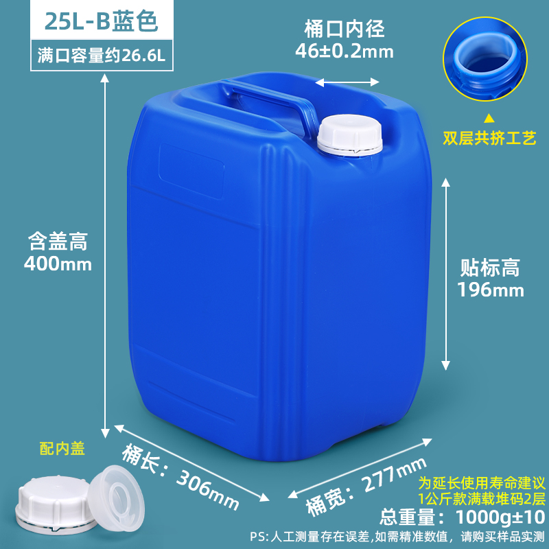 스택 배럴 오일 배럴 화학 배럴 용액 폐 배럴 20/25L kg kg 사각형 배럴 뚜껑 밀봉 플라스틱 배럴