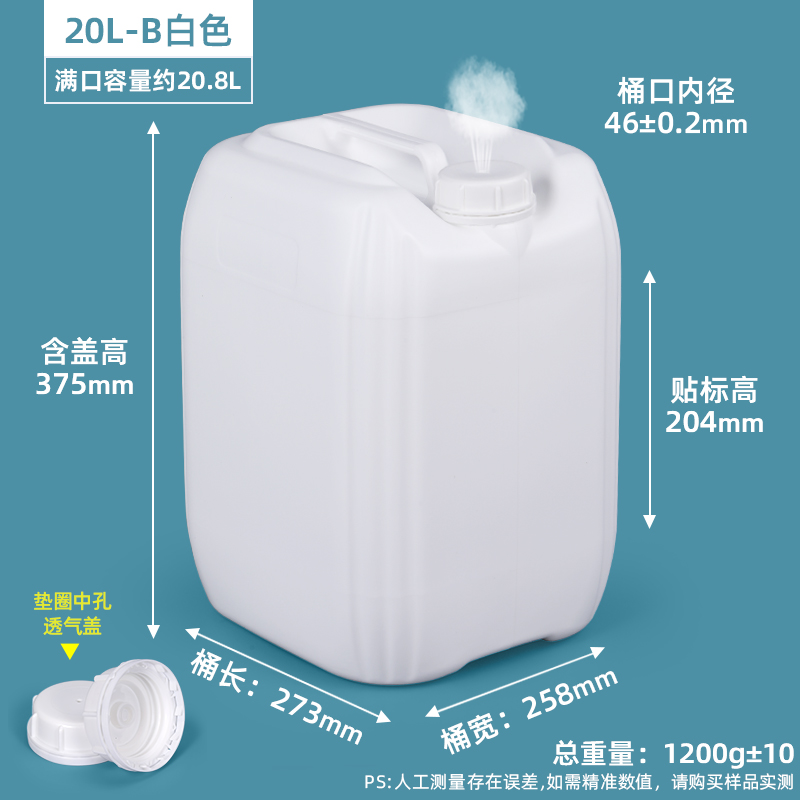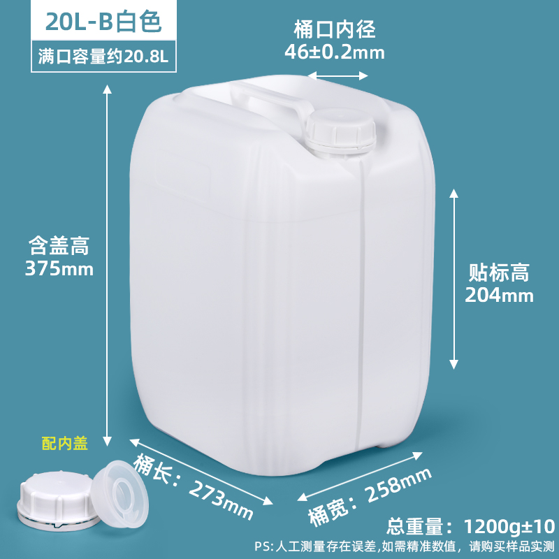 • 20리터 유백색 모델 B 1.2KG, 입 전체 용량은 약 21L