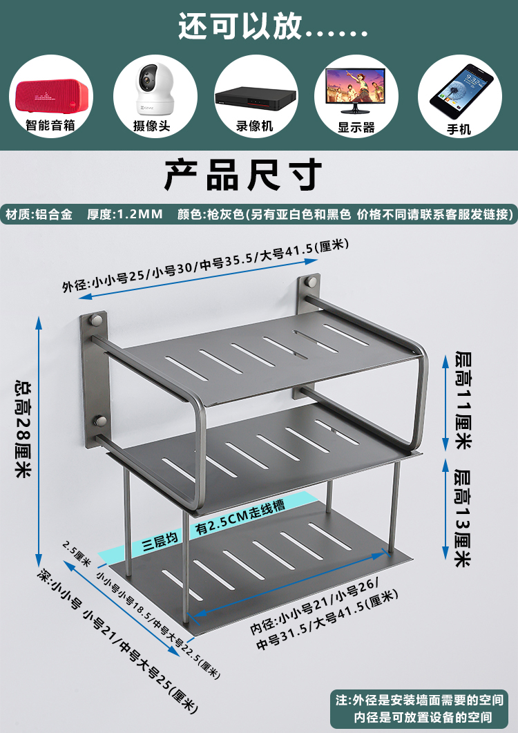 벽걸이 형 브래킷 벽 저장 상자 셋톱 박스 TV 브래킷 알루미늄 합금 프로젝터 라우터 저장 랙