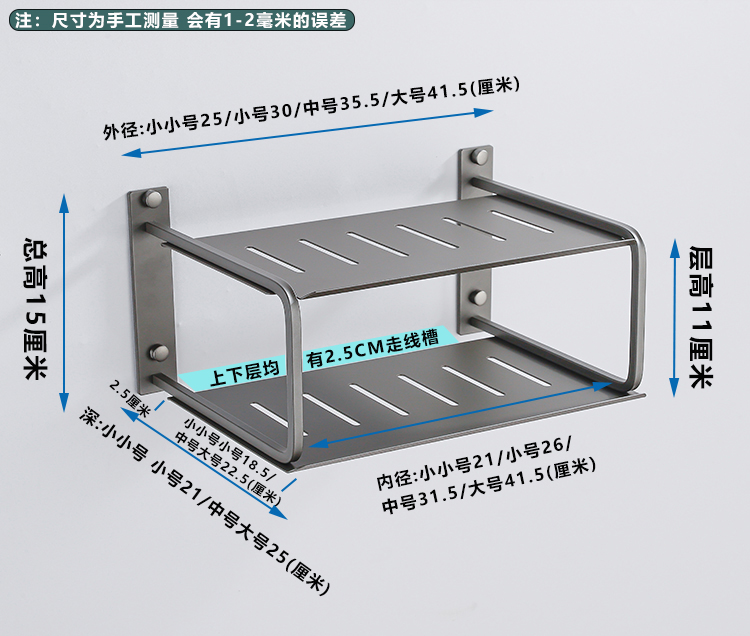 买前请先量好你所要放的产品外尺寸,架子我们有量外尺寸和内尺寸,请按需要的购买,避免不必要的麻烦谢谢