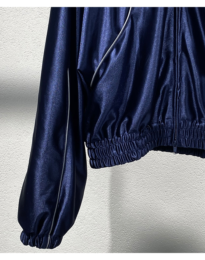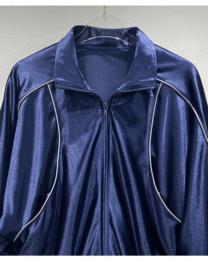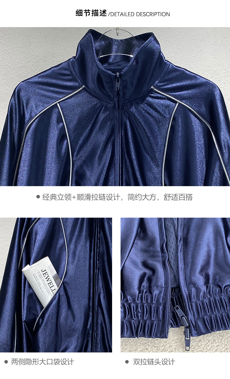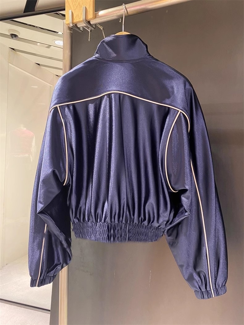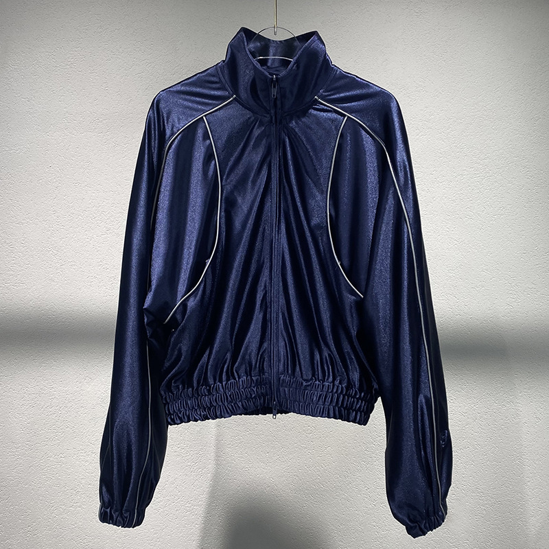 재고 틈새 2025 봄과 여름 새로운 다크 블루 지퍼 하이 넥 슬림핏 올 매치 롱 슬리브 재킷스토어 가기