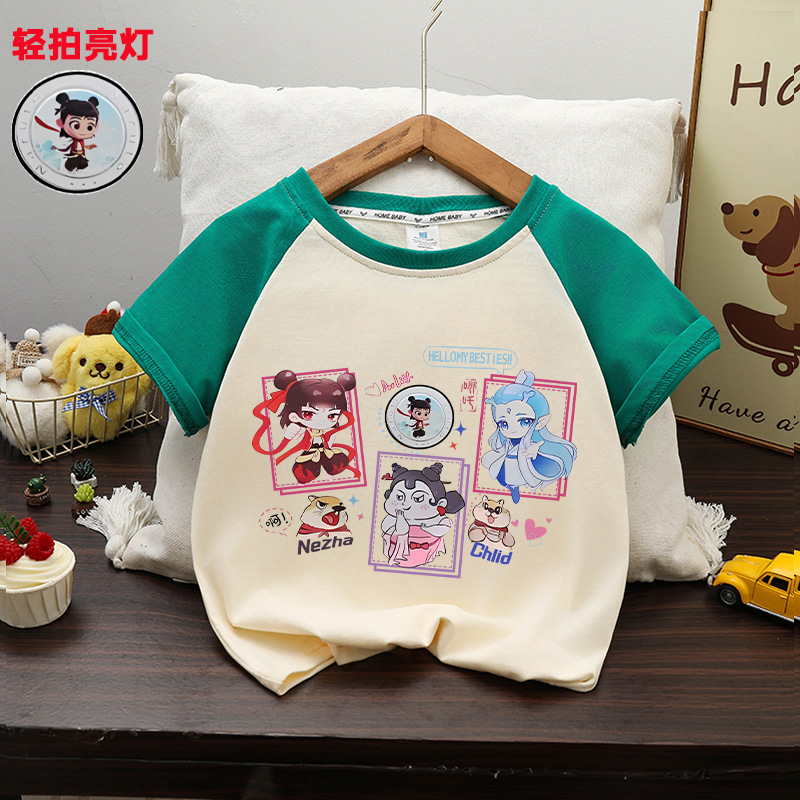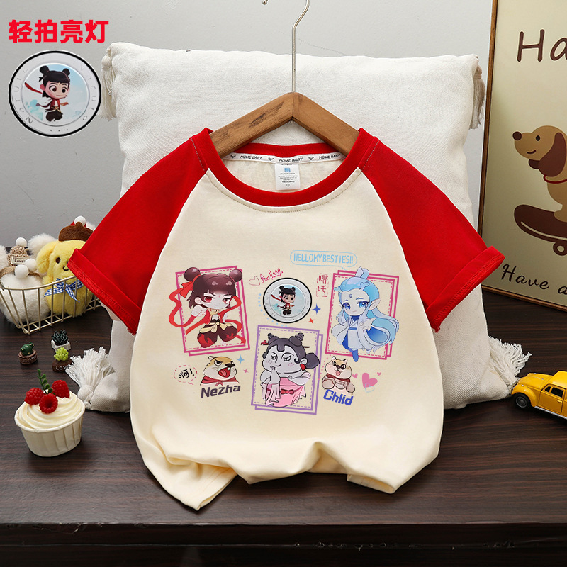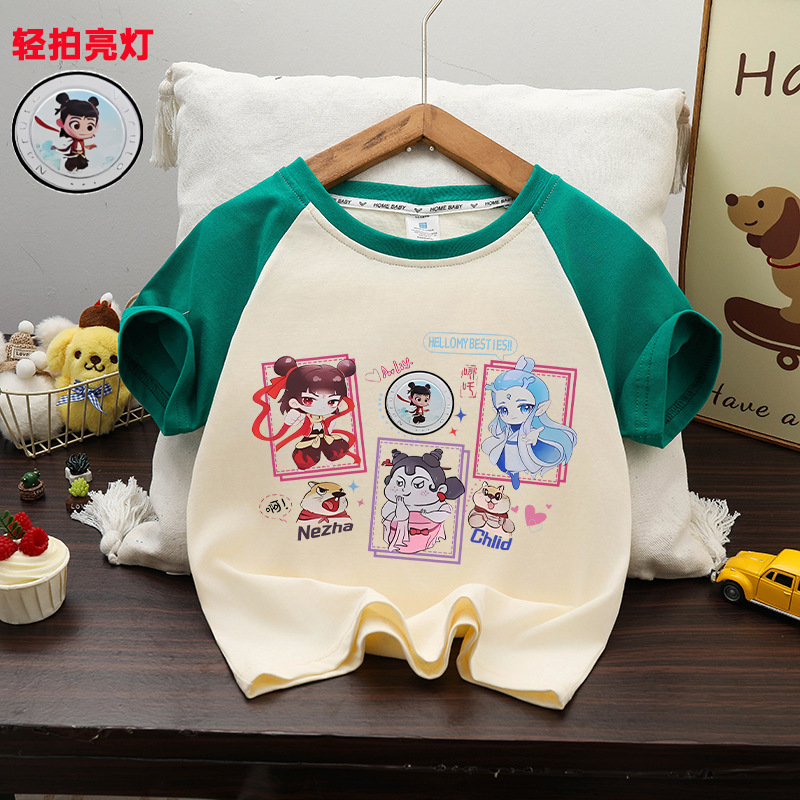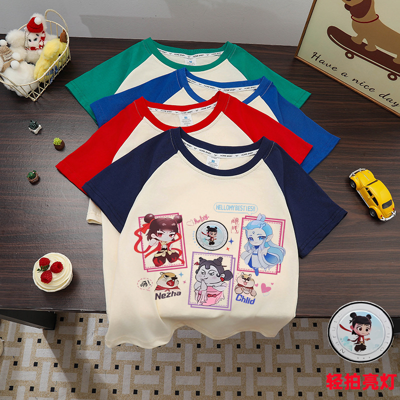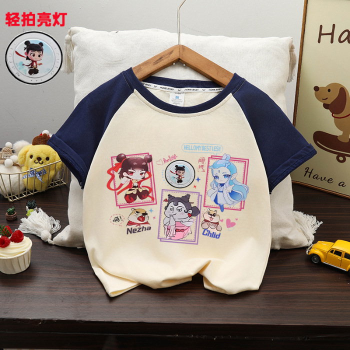 남자와 여자의 서양식 애니메이션 네자 악마 아이 반팔 티셔츠 여름 2025 아기 소년을위한 새로운 스타일 캐주얼 옷