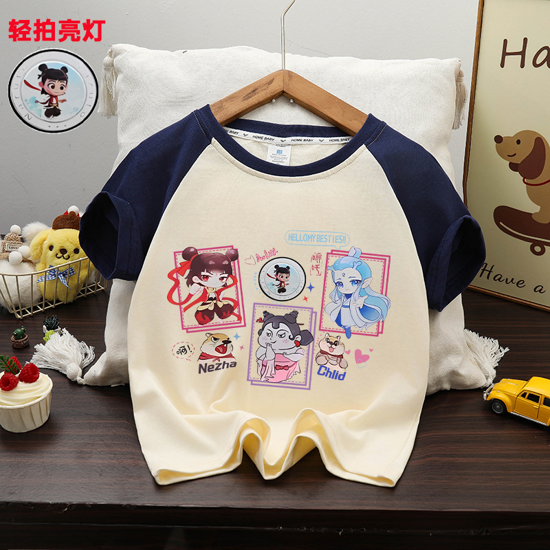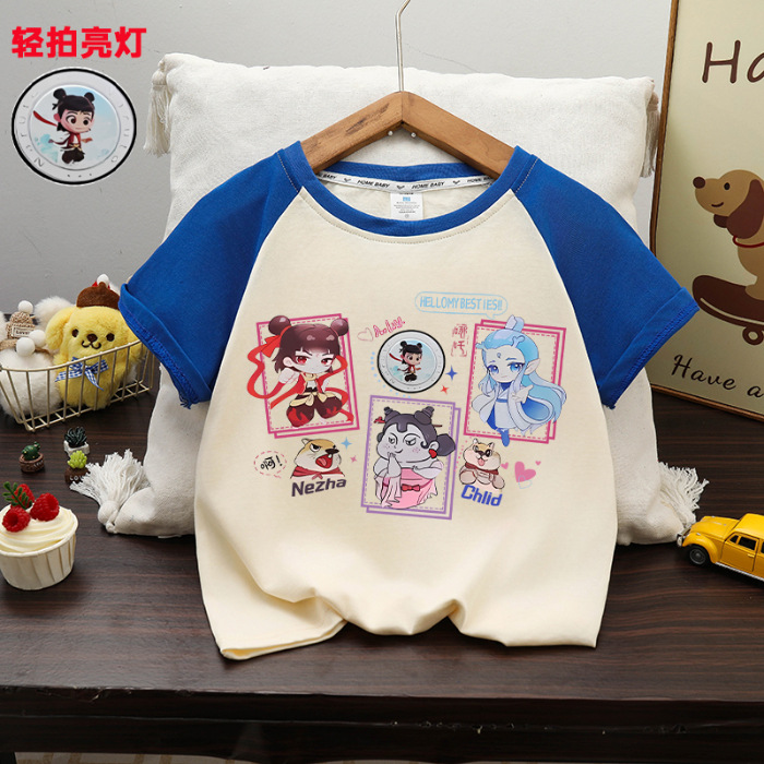 남자와 여자의 서양식 애니메이션 네자 악마 아이 반팔 티셔츠 여름 2025 아기 소년을위한 새로운 스타일 캐주얼 옷스토어 가기