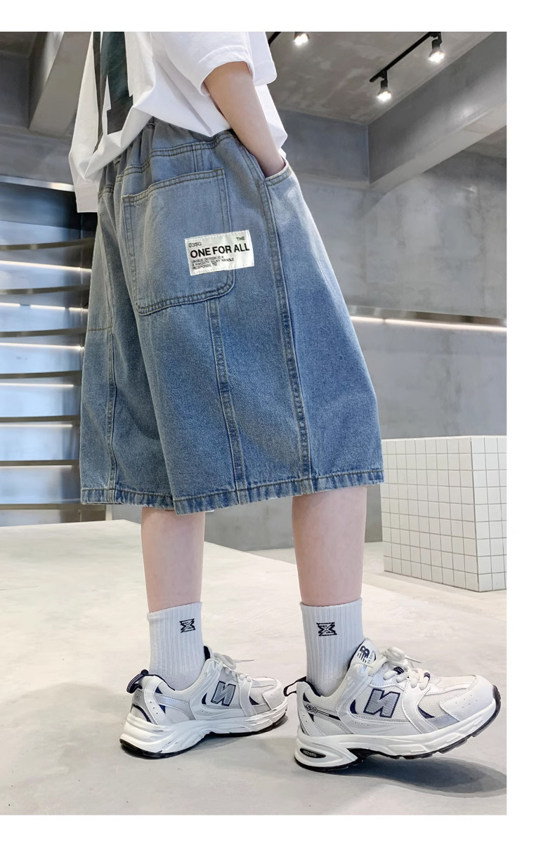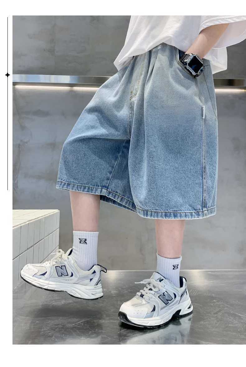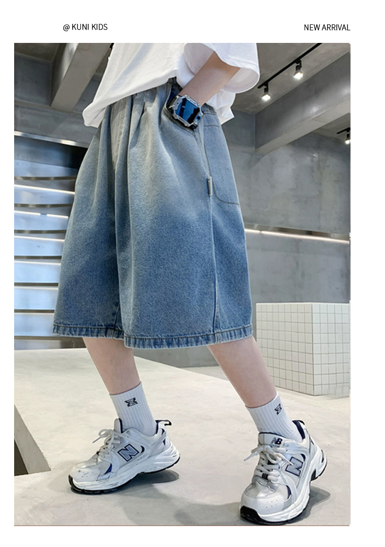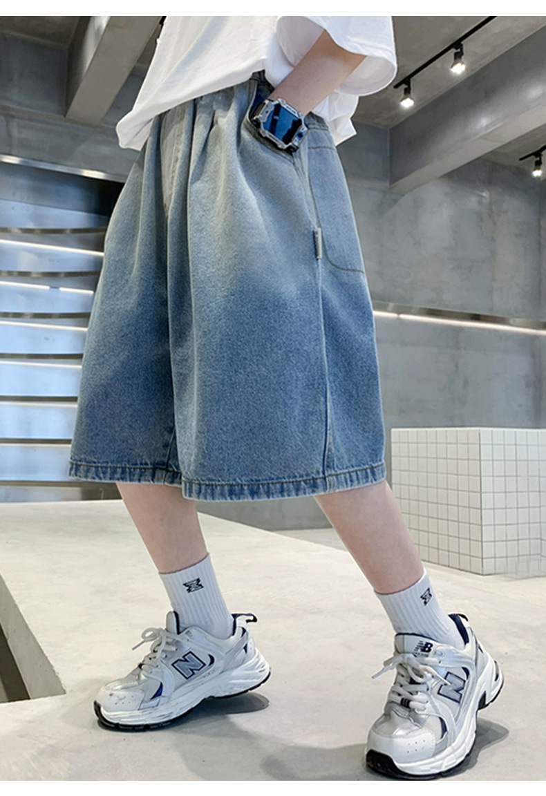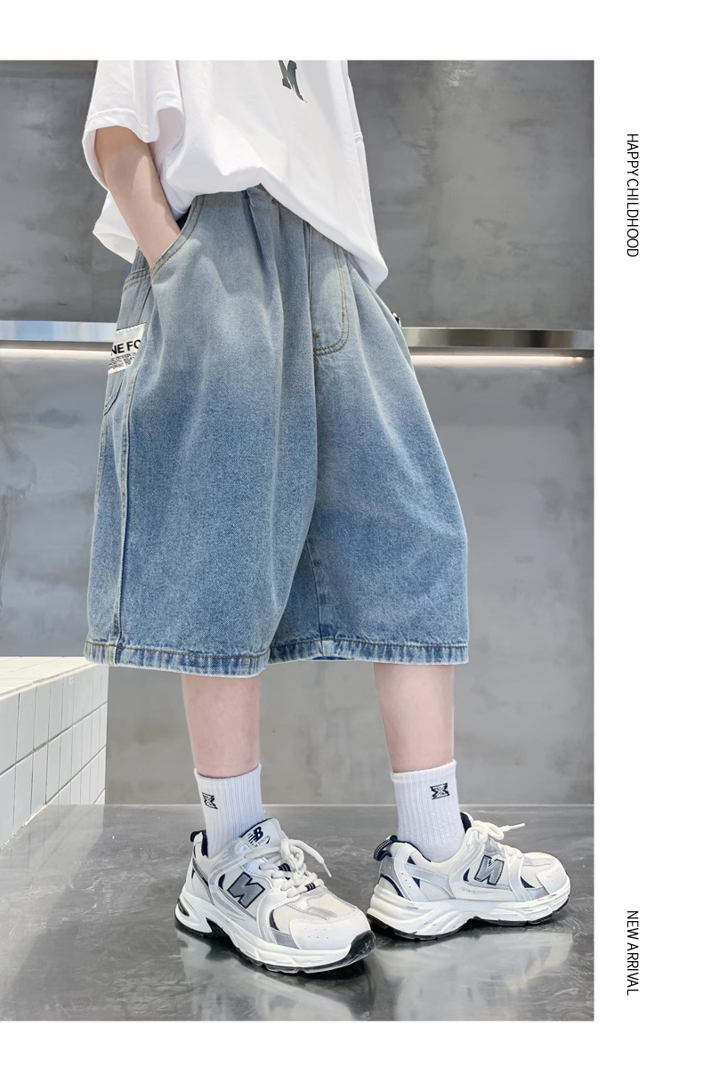 아동복 소년 여름 청바지 소년 5 점 바지 2025 새로운 스타일 대형 어린이 바지 어린이 얇은 바지 여름스토어 가기