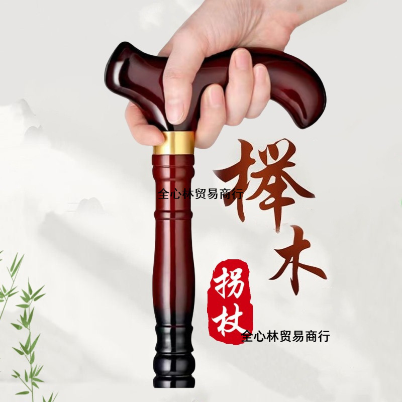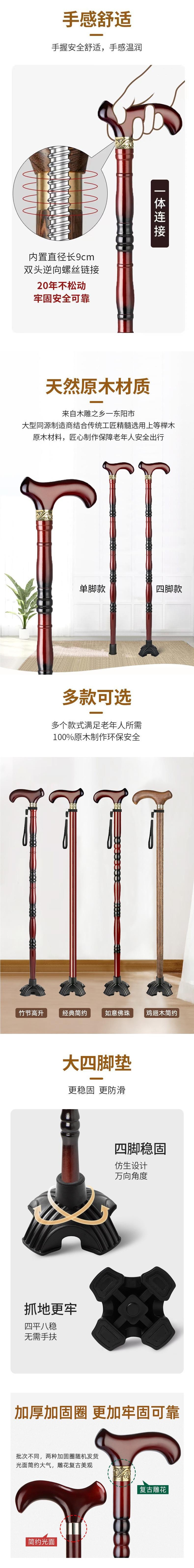 노인 4 개 다리 비 슬립 치킨 윙 우드 워킹 스틱 경량 강한 수도꼭지 레드 우드 핸드 레일
