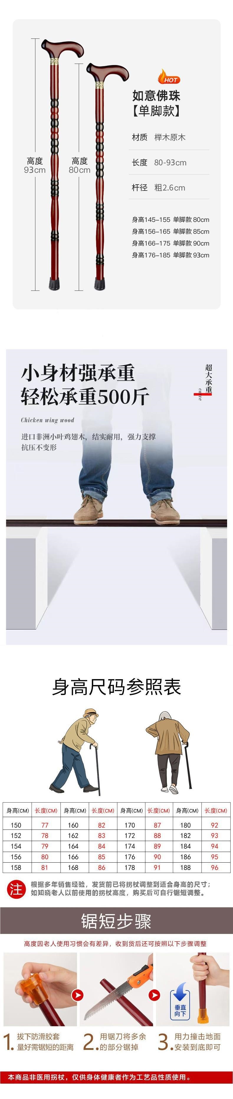 • 닭 날개 나무 목발, 키 156-165, 한쪽 다리 85cm