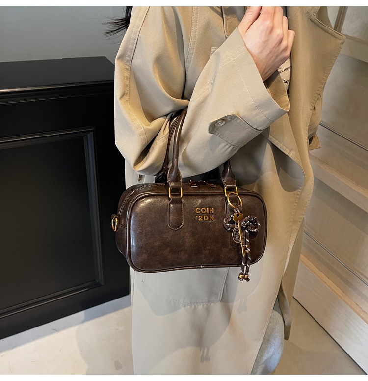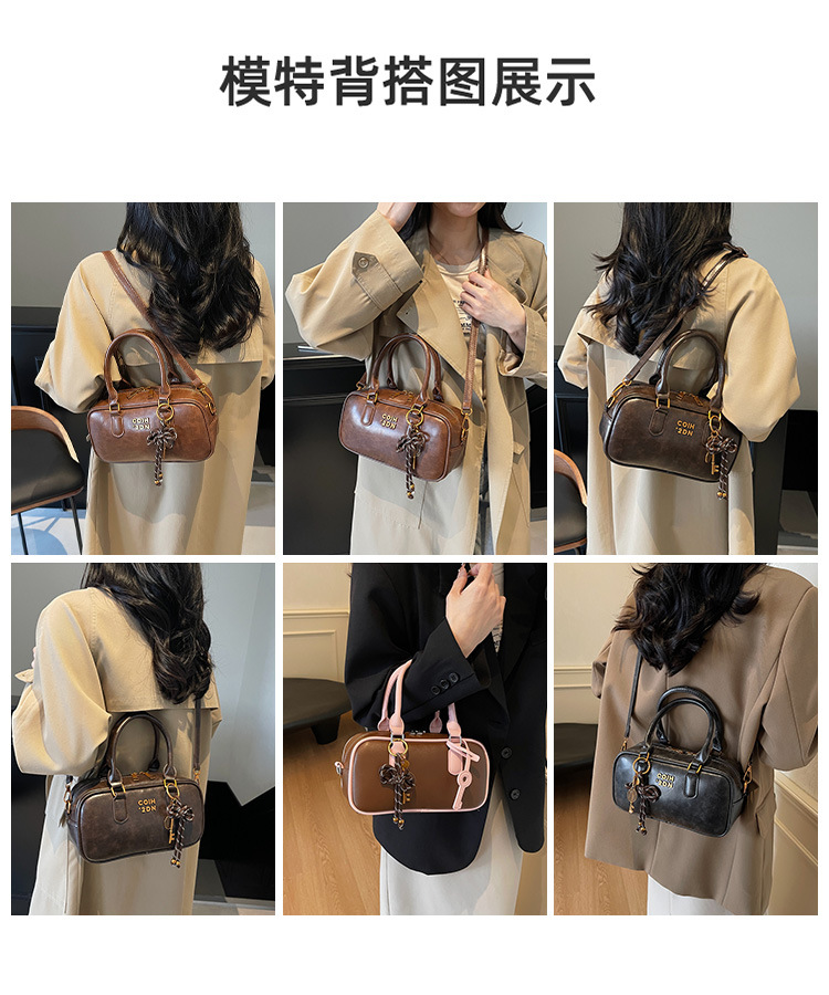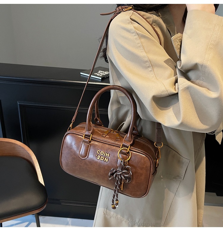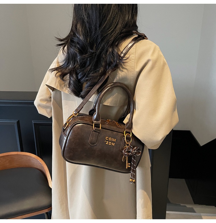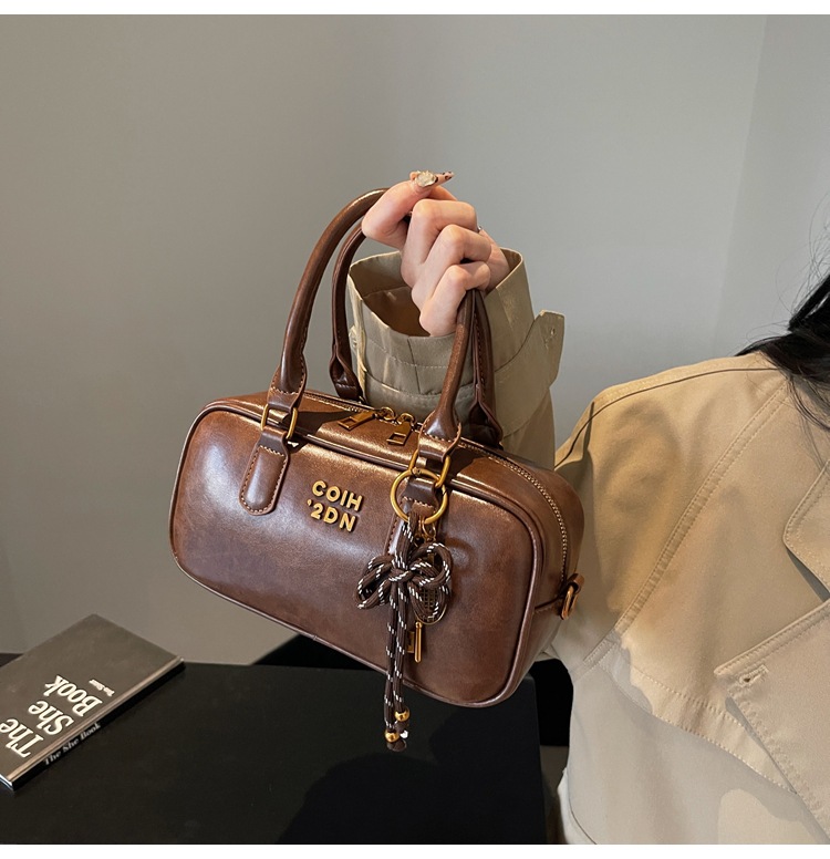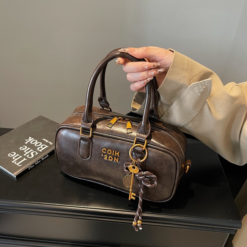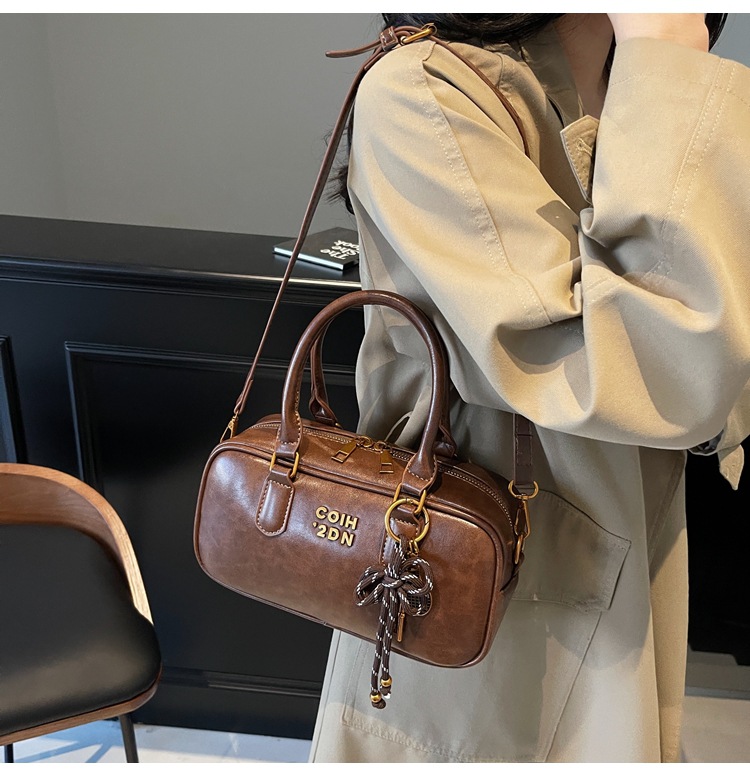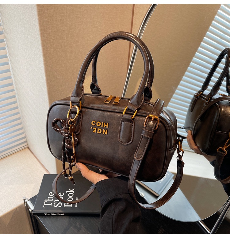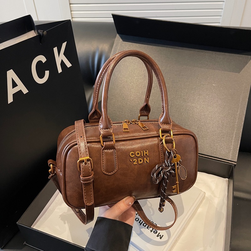 국경을 넘는 휴대용 숄더백 볼링백 여성용 한국 소규모 디자이너 레트로 휴대용 보스턴백 다용도스토어 가기