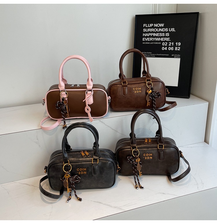국경을 넘는 휴대용 숄더백 볼링백 여성용 한국 소규모 디자이너 레트로 휴대용 보스턴백 다용도