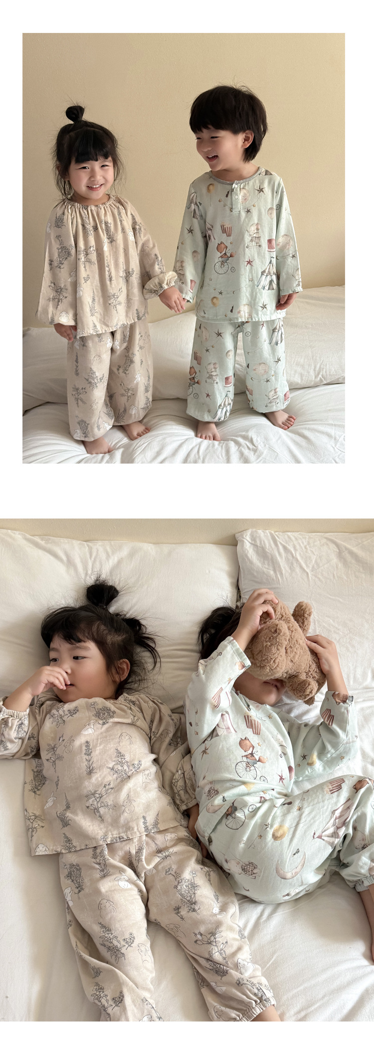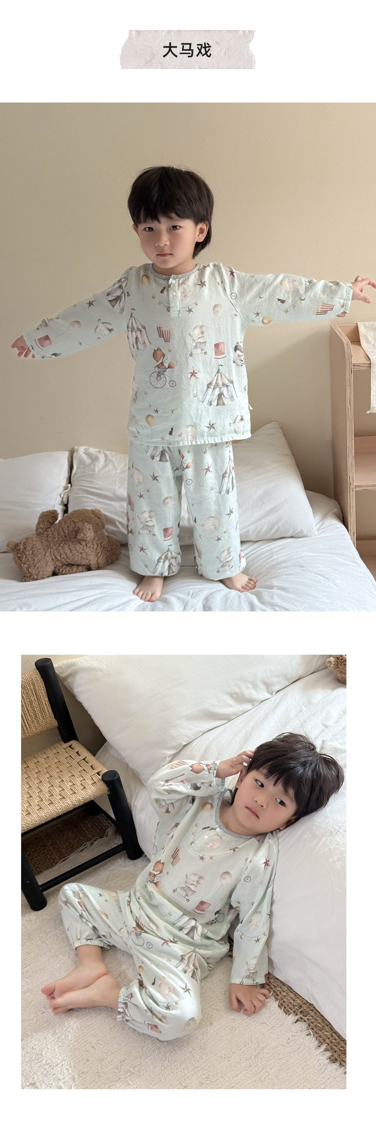 • 빅 서커스 - 아동용 더블 레이어 거즈 긴팔 바지 홈웨어 세트