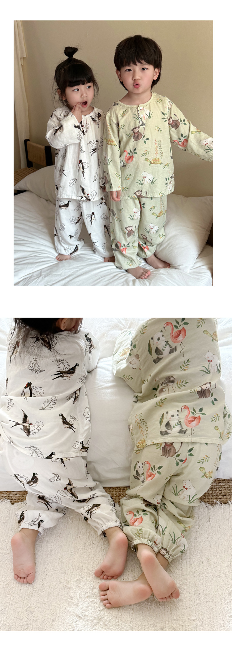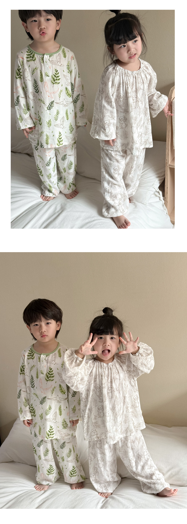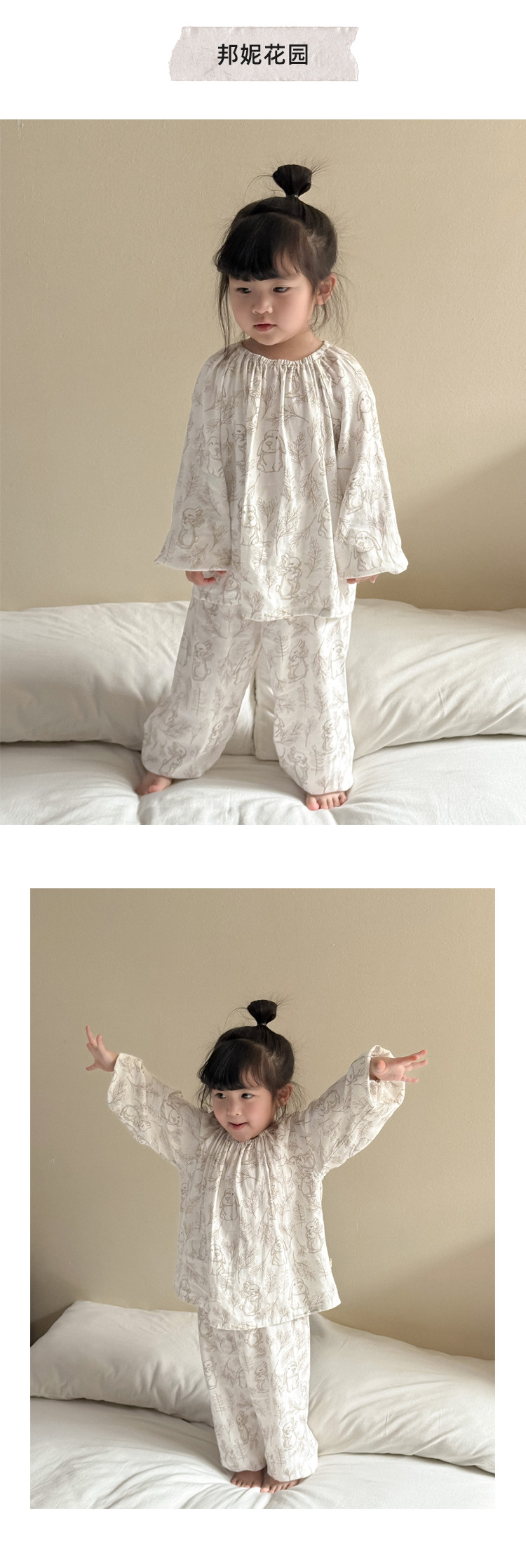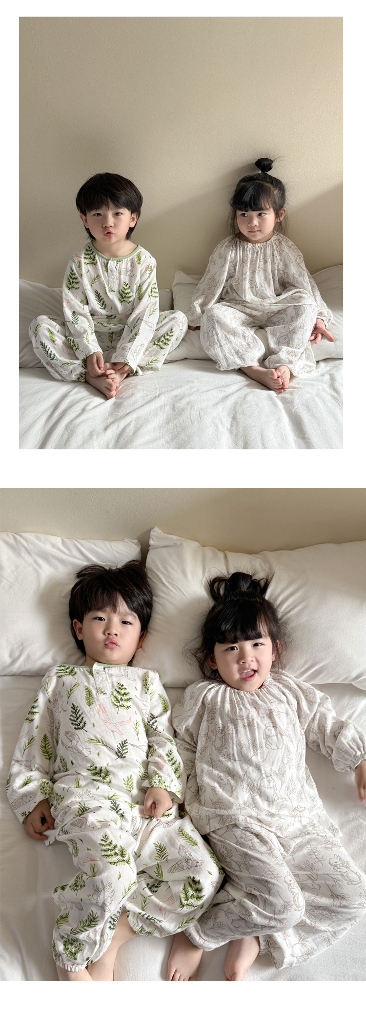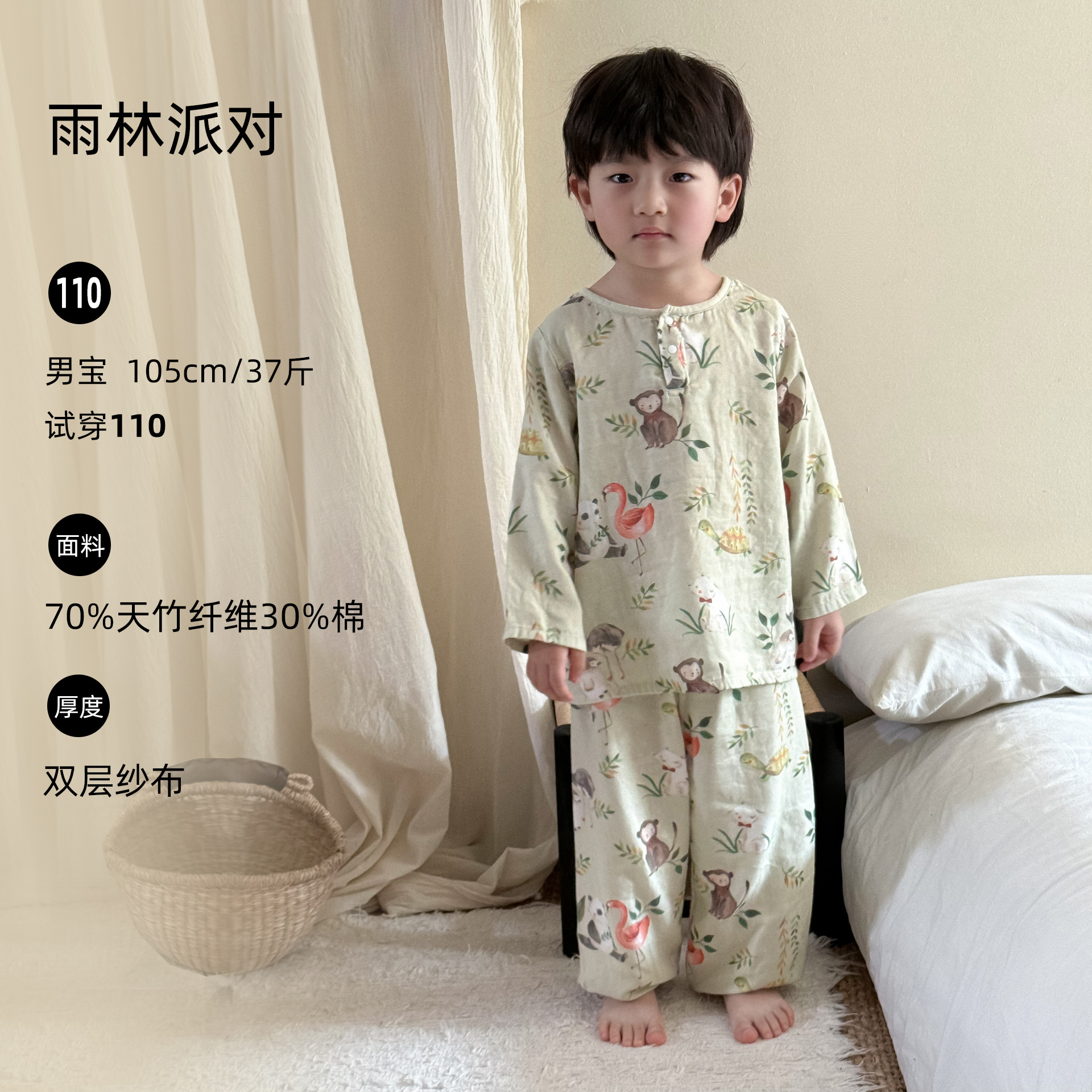 • 레인포레스트 파티-어린이 더블 레이어 거즈 긴팔 바지 홈웨어 세트