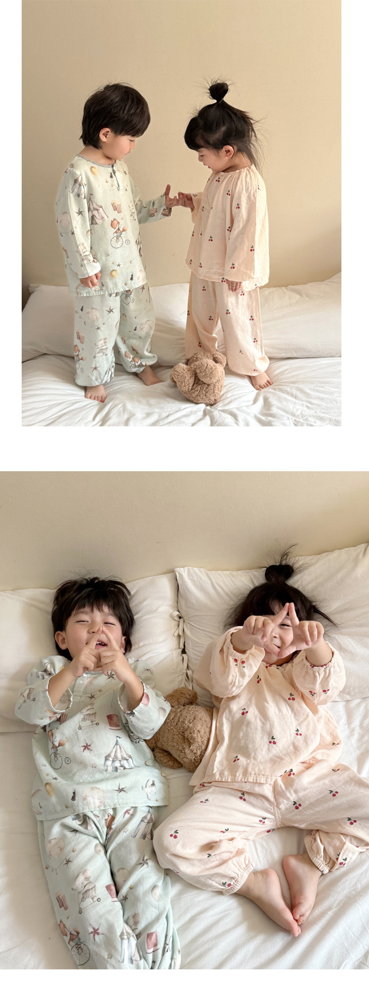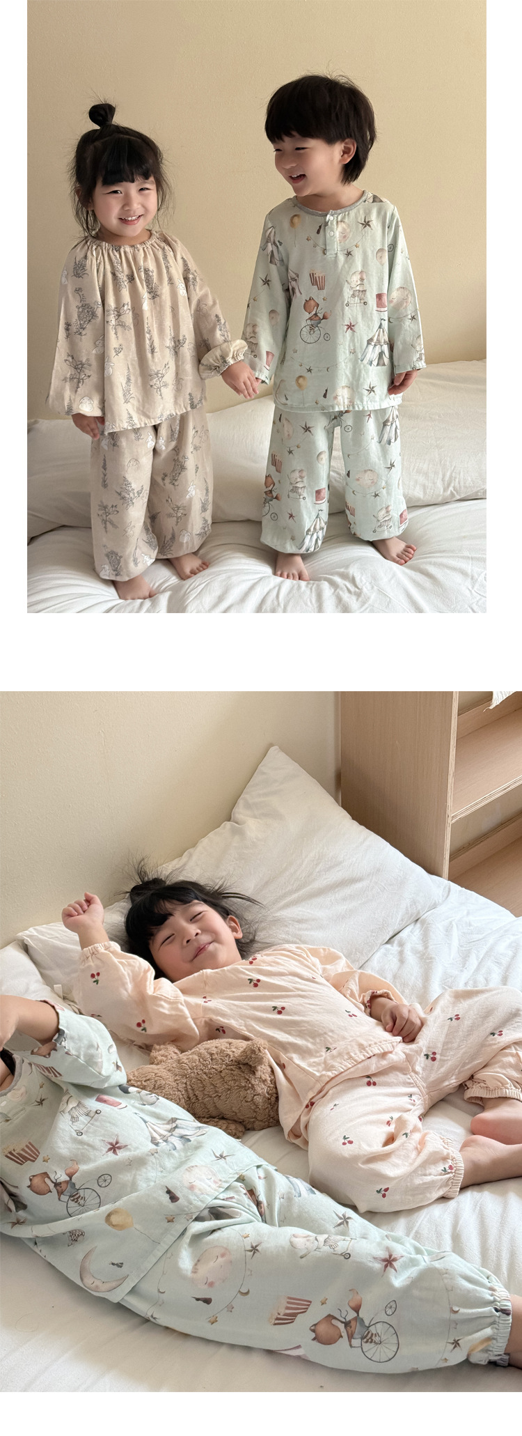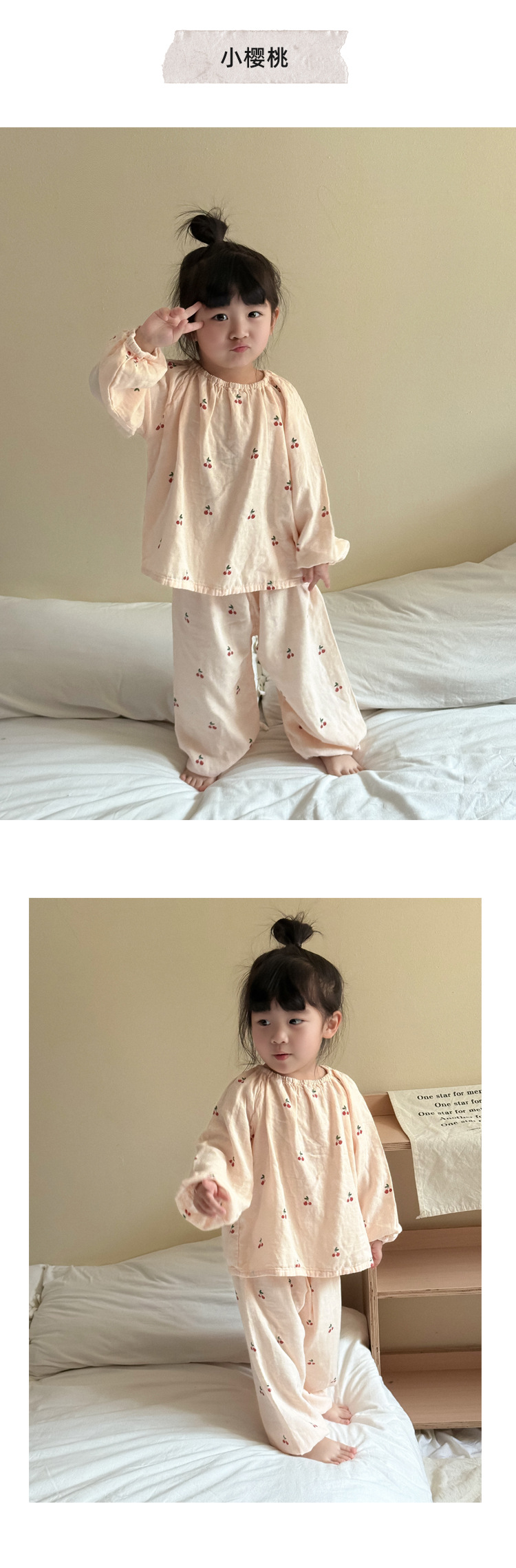 • 리틀체리-어린이 더블 레이어 거즈 긴팔 바지 홈웨어 세트