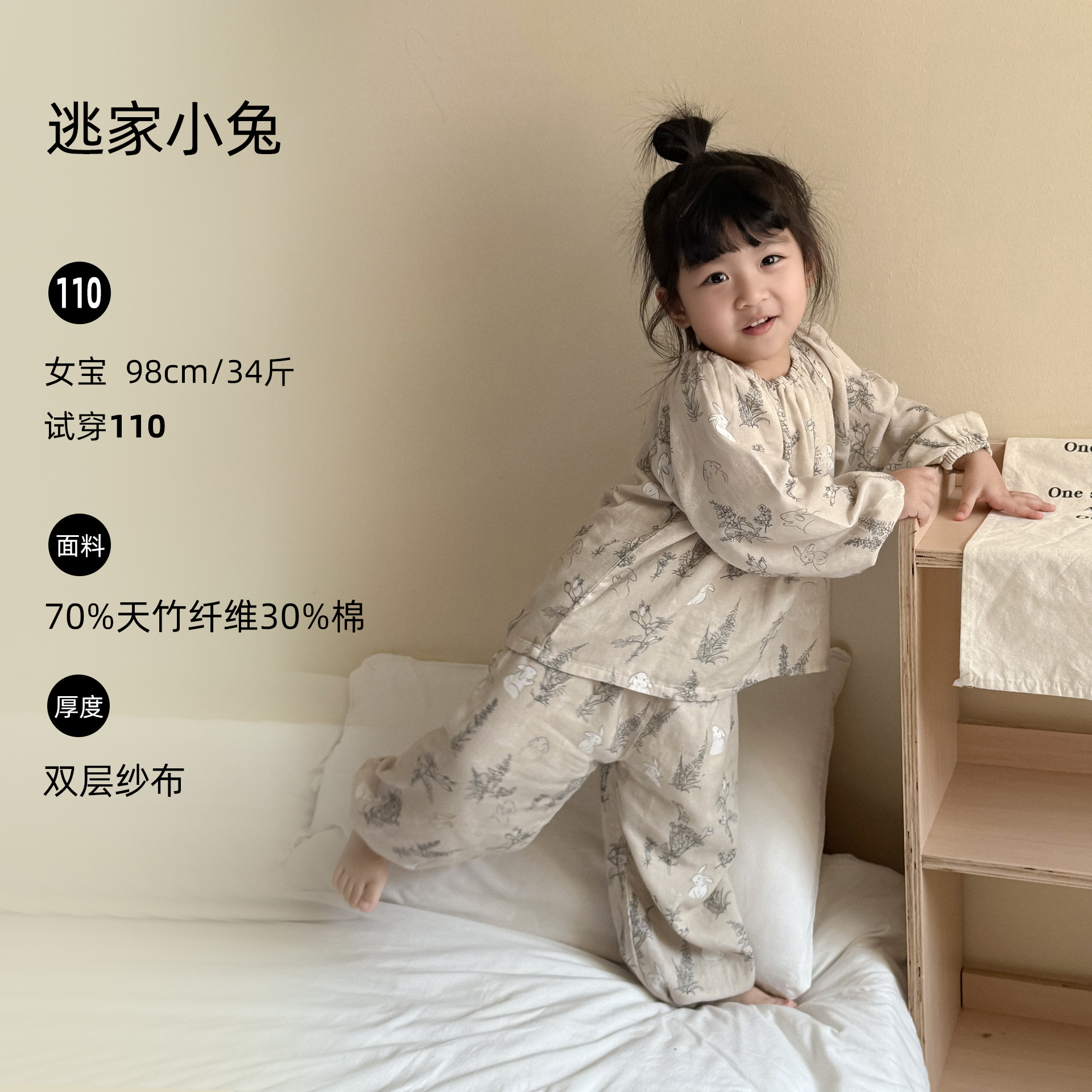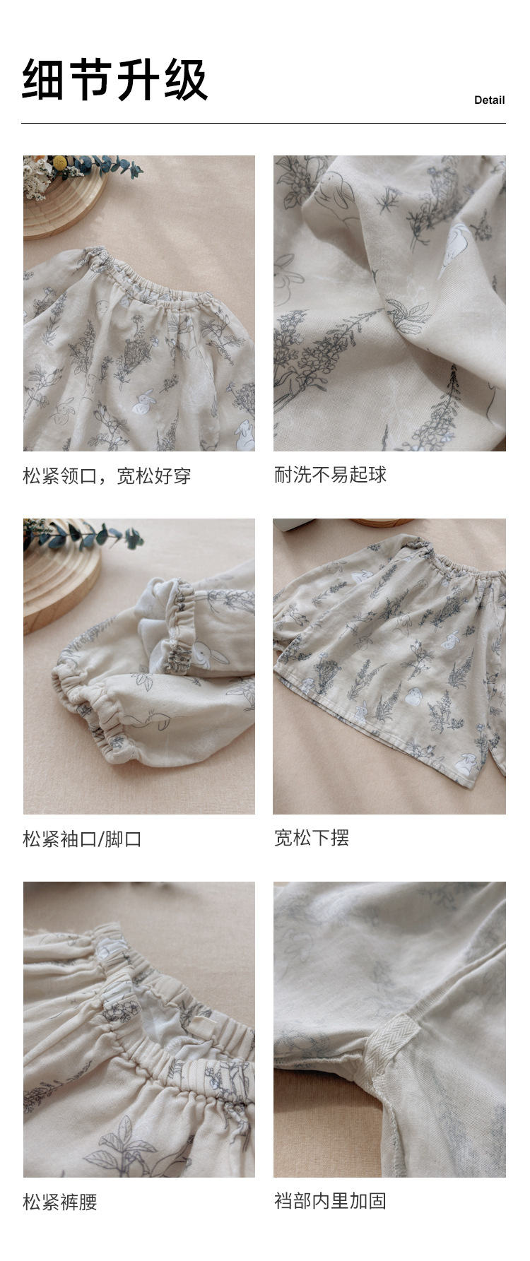 • Runaway Bunny - 아동용 더블 레이어 거즈 긴팔 바지 홈웨어 세트